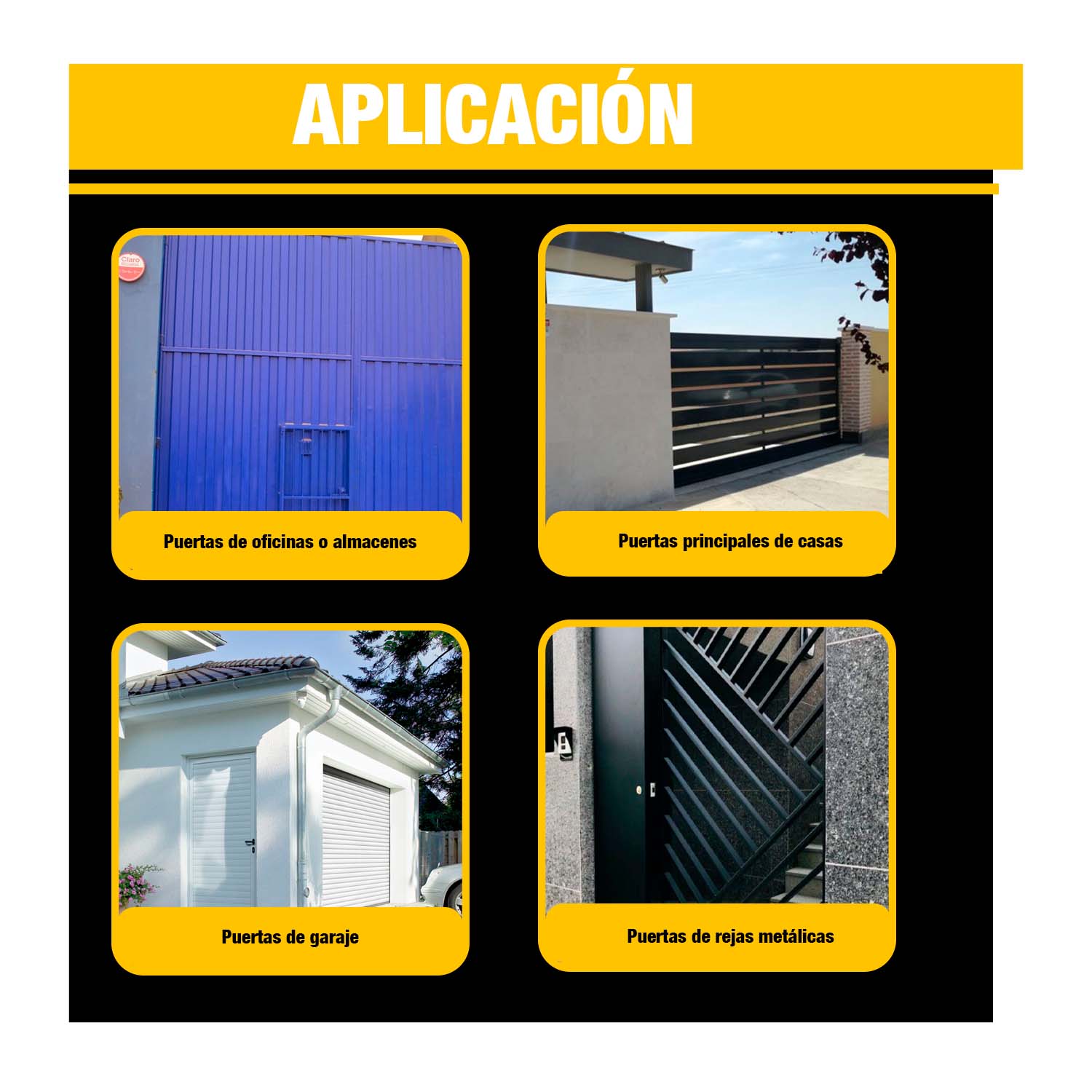 - Uso recomendado: Puertas metálicas pesadas, puertas exteriores, rejas, almacenes