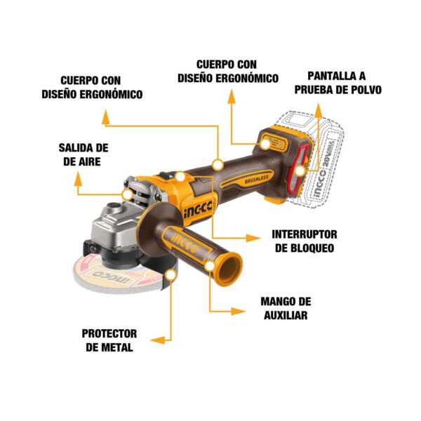 AMOLADORA ANGULAR 20V BRUSHLESS 115MM INGCO CAGLI21154