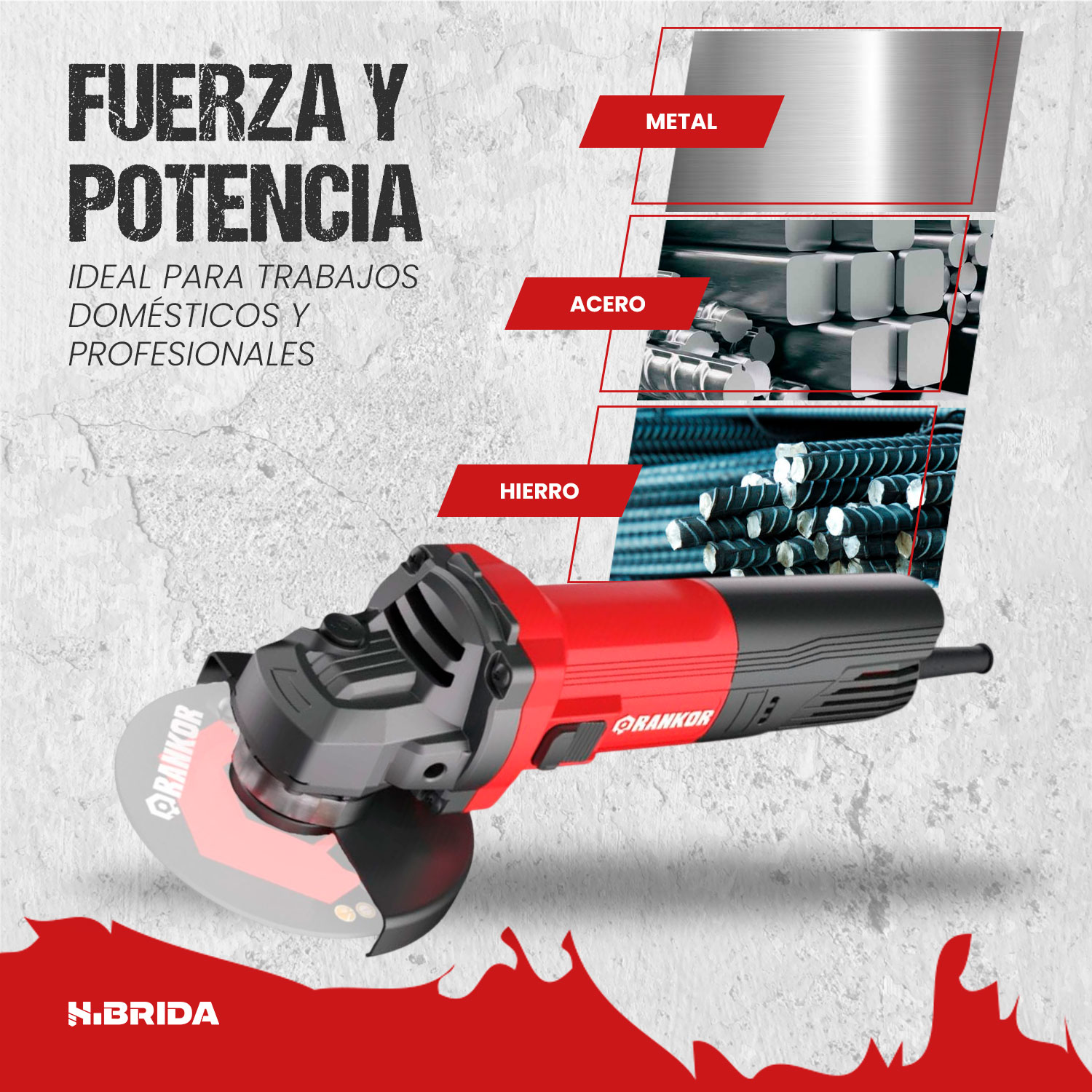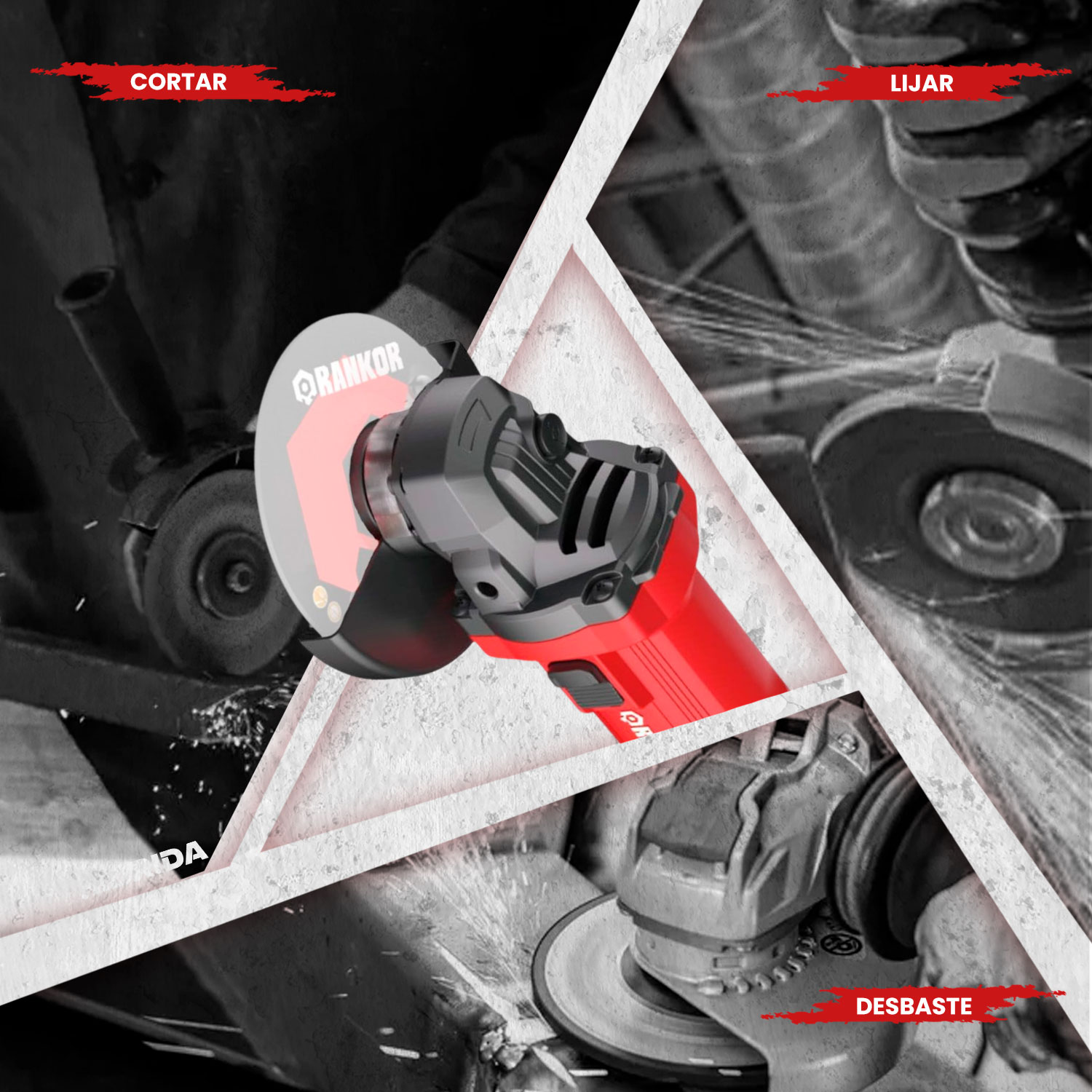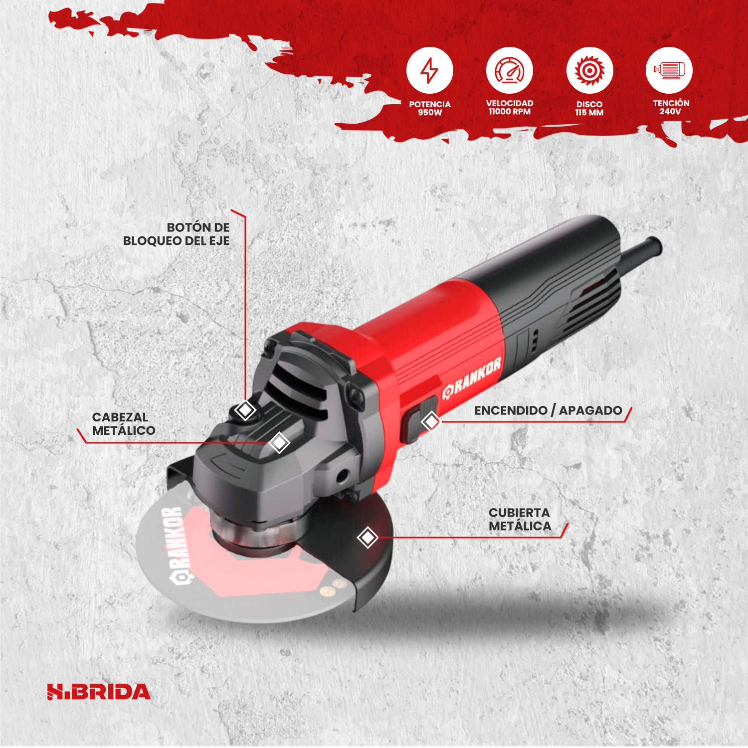 La amoladora Rankor RAG950401 es una herramienta eléctrica potente y versátil diseñada para trabajos de corte, desbaste y pulido en distintos materiales. Cuenta con un motor de 950 W que alcanza una velocidad de hasta 11,000 rpm, lo que permite realizar trabajos rápidos y eficientes en metal, concreto, piedra, cerámica y otros materiales de construcción. Utiliza discos de 4.5 pulgadas (115 mm) y posee un diseño compacto y ergonómico que facilita el manejo y el control durante el trabajo. Además, incorpora bloqueo de eje para cambio rápido de disco, guarda protectora y empuñadura auxiliar, brindando mayor seguridad y estabilidad en aplicaciones de metalmecánica, mantenimiento y construcción