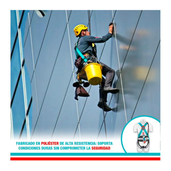 Este arnés de seguridad está diseñado para brindarte la máxima confianza en trabajos en altura. Su estructura de poliéster de alta resistencia, con cintas de 50 mm, ofrece durabilidad y firmeza, mientras que sus tres puntos de anclaje y cuatro de ajuste garantizan una sujeción personalizada y segura.