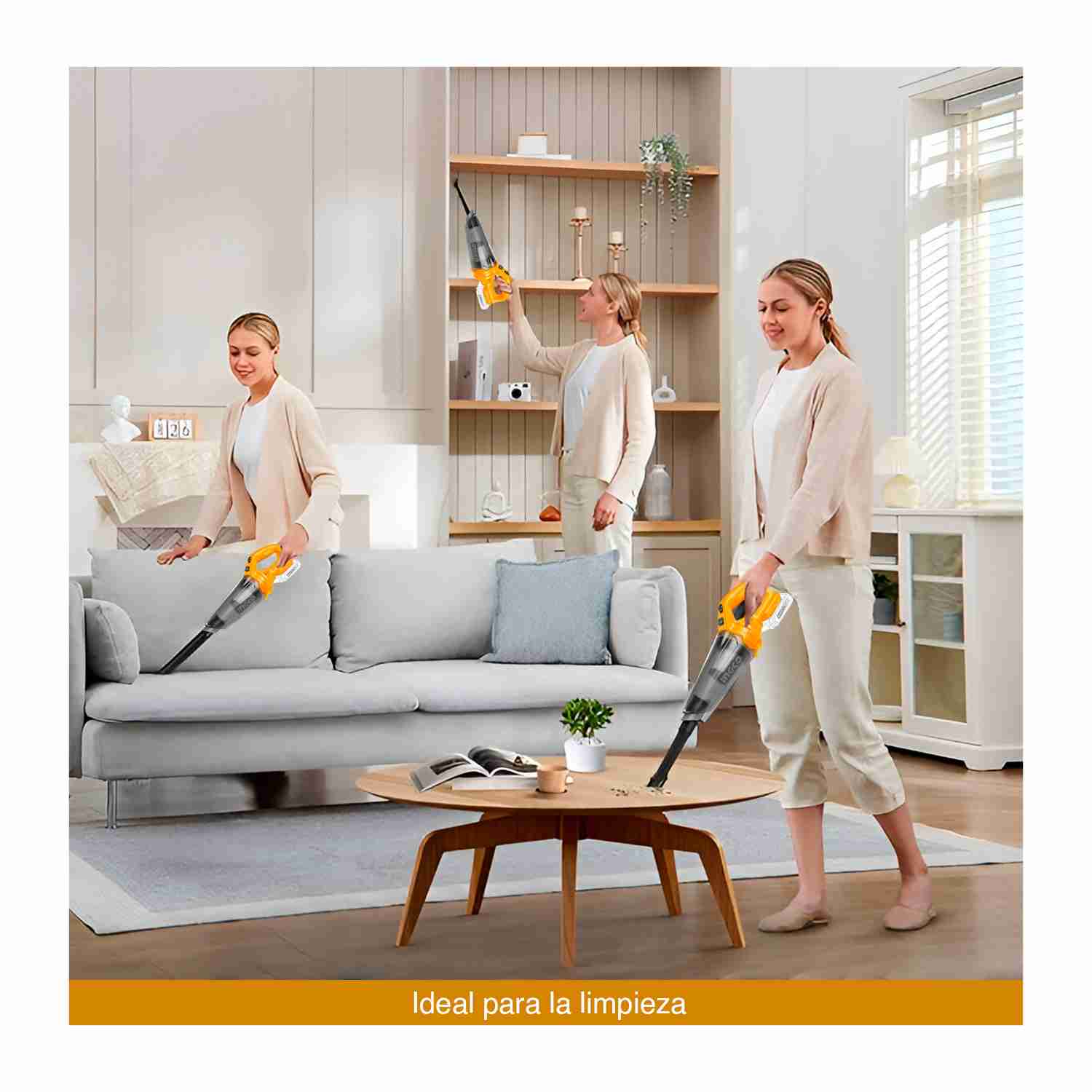 Mantén tu hogar, oficina o vehículo siempre limpios con esta potente y práctica aspiradora portátil. Su diseño ergonómico y liviano te permite llegar a cada rincón sin esfuerzo. Funciona con batería recargable de 20V, ofreciendo libertad de movimiento sin cables. Incluye accesorios especializados: boquilla estrecha para zonas difíciles, boquilla con cepillo para polvo y gafas de seguridad para mayor protección. Ideal para limpiezas rápidas, precisas y eficientes