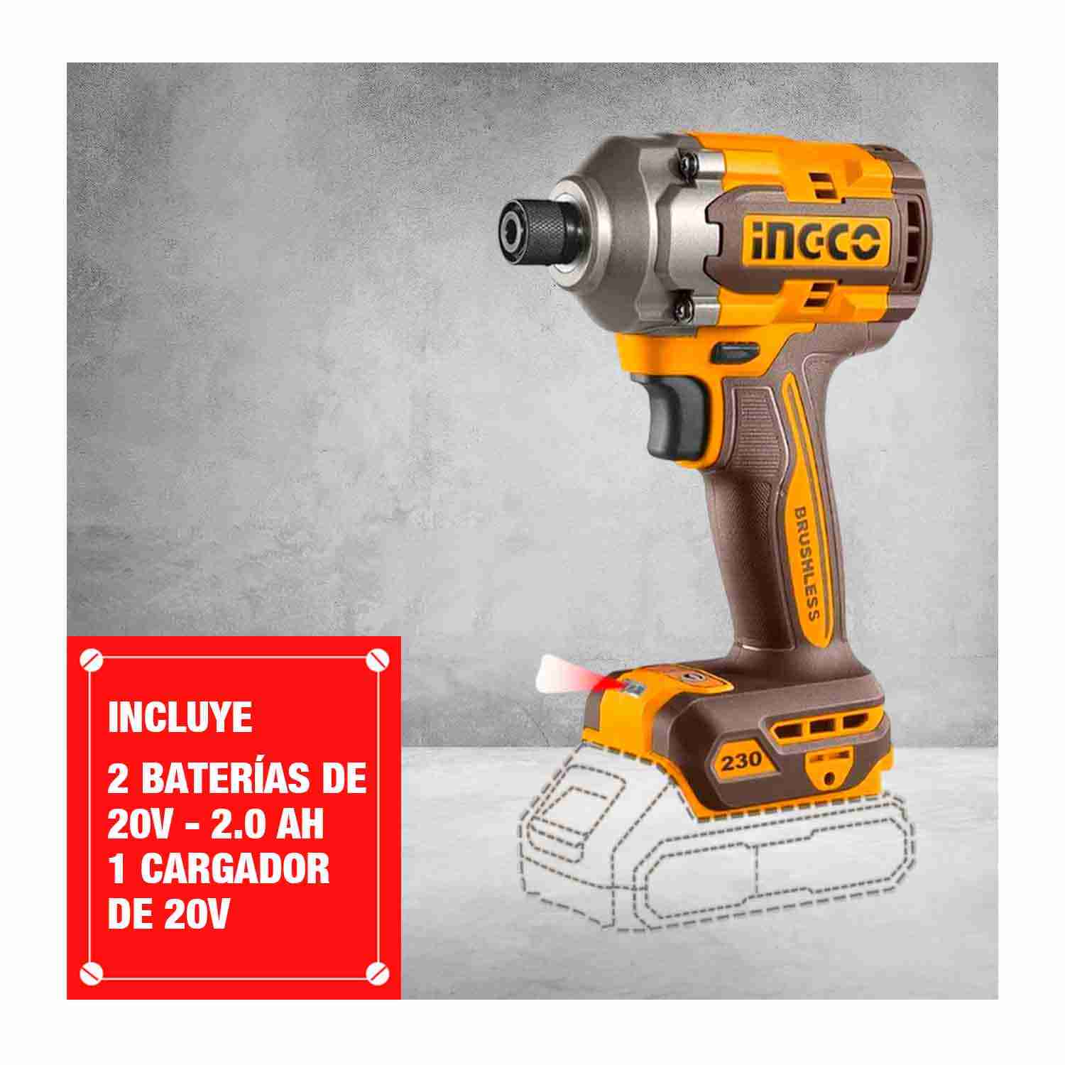 Atornillador De Impacto Brushless + 2 Baterías 20v 20ah + 2 Puntas hexagonal