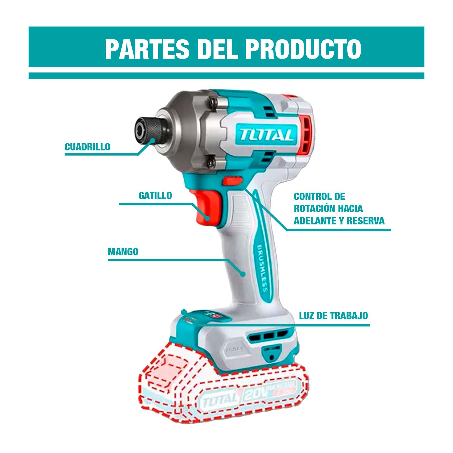 FICHA TÉCNICA: ATORNILLADOR DE IMPACTO 230NM TOTAL 2 BATERÍAS BRUSHLESS