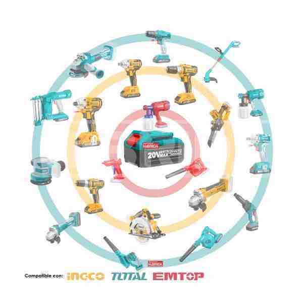 - Adaptable a todas las herramientas inalámbricas TOTAL INGCO EMTOP WADFOW de 20V