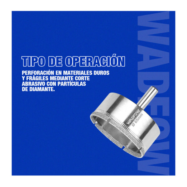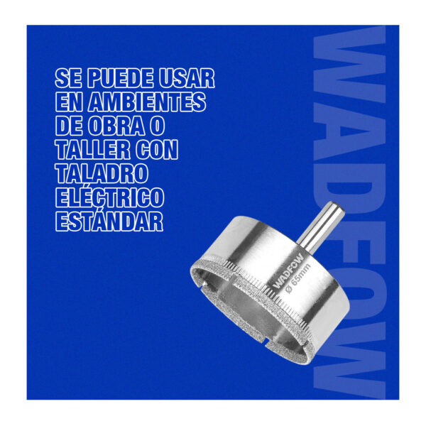 La WKJ7665 es una sierra copa de diamante de 65 mm diseñada para realizar perforaciones precisas en materiales duros como cerámica, porcelanato, vidrio y piedra. Requiere uso con agua para refrigeración, lo que evita el sobrecalentamiento y prolonga la vida útil de la herramienta. Ideal tanto para proyectos de bricolaje como para trabajos profesionales, garantiza cortes limpios y eficientes en superficies delicadas y resistentes.