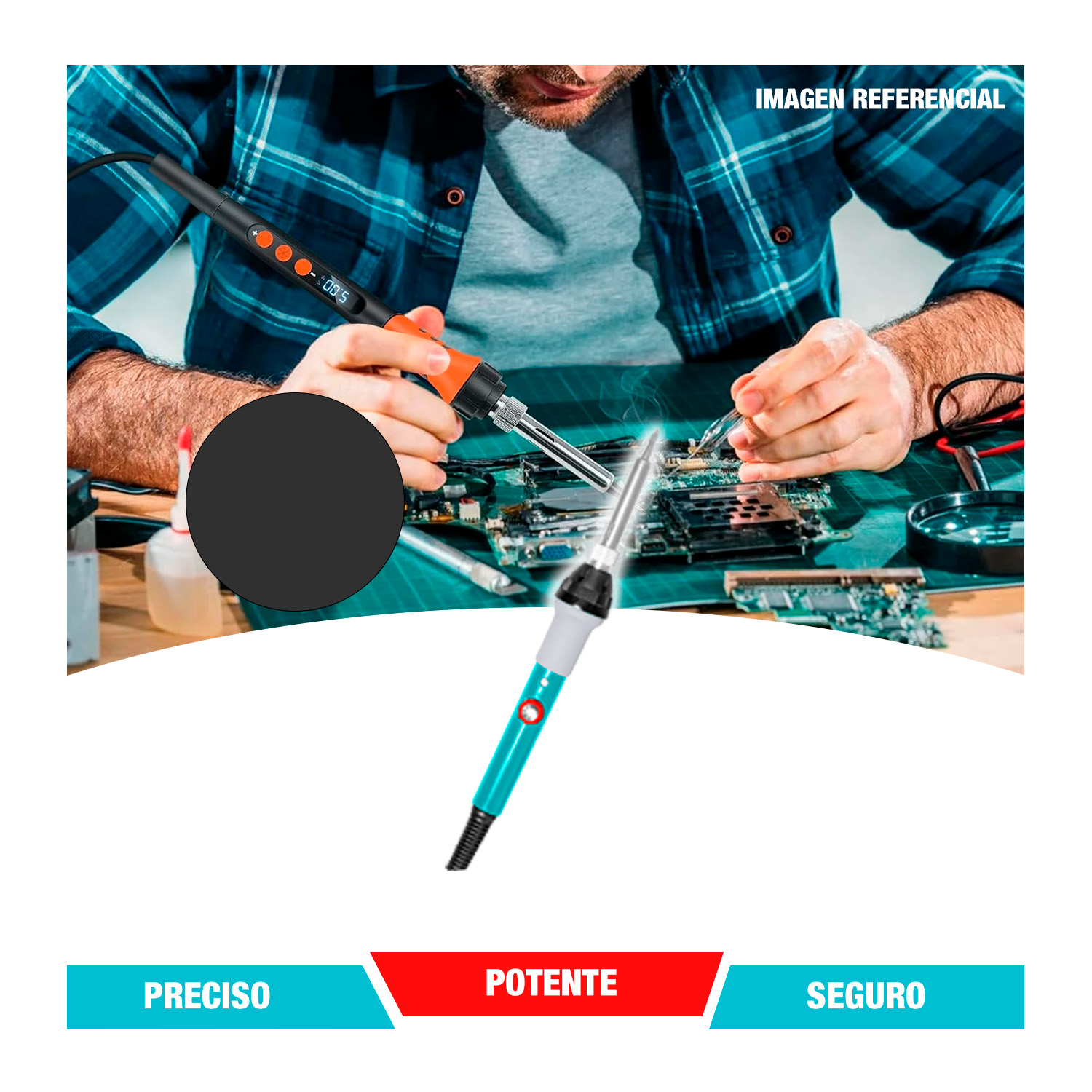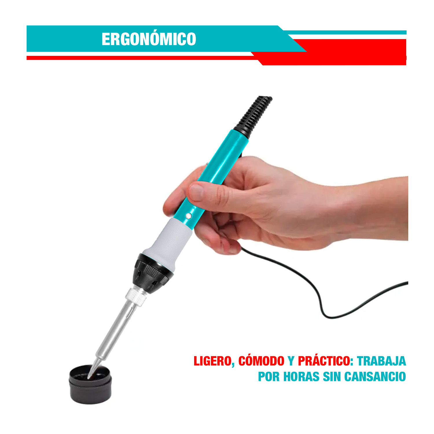 Realiza soldaduras limpias y precisas con esta práctica herramienta tipo lápiz. Su potencia de 60 W y temperatura ajustable te permiten trabajar en todo tipo de proyectos, desde reparaciones electrónicas hasta manualidades más delicadas. Su diseño ergonómico facilita un agarre cómodo y seguro, mientras que el soporte incluido asegura mayor practicidad y seguridad en cada uso. Ideal para profesionales y aficionados que buscan calidad, control y eficiencia en cada soldadura.