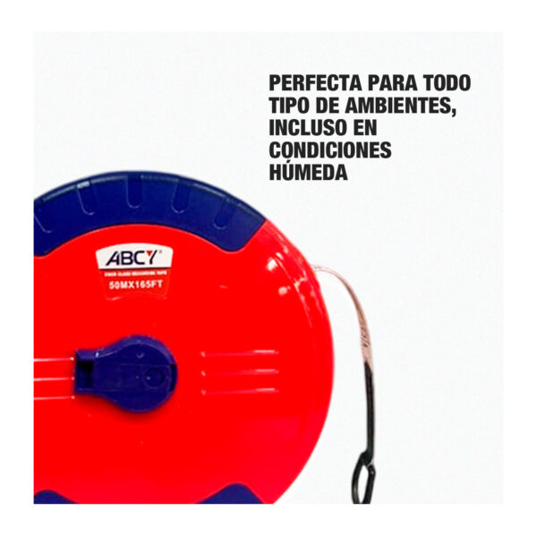 La wincha de fibra de vidrio de 50 metros ABCY es una herramienta práctica y resistente diseñada para realizar mediciones de largas distancias en construcción, topografía, agricultura y trabajos de campo. Su cinta de fibra de vidrio evita la corrosión, mantiene la flexibilidad y ofrece precisión en cada uso, mientras que su carcasa plástica con manivela retráctil facilita el enrollado y protege la cinta. Ligera, duradera y fácil de transportar, es ideal para profesionales y aficionados que necesitan una medición confiable en todo tipo de entornos.