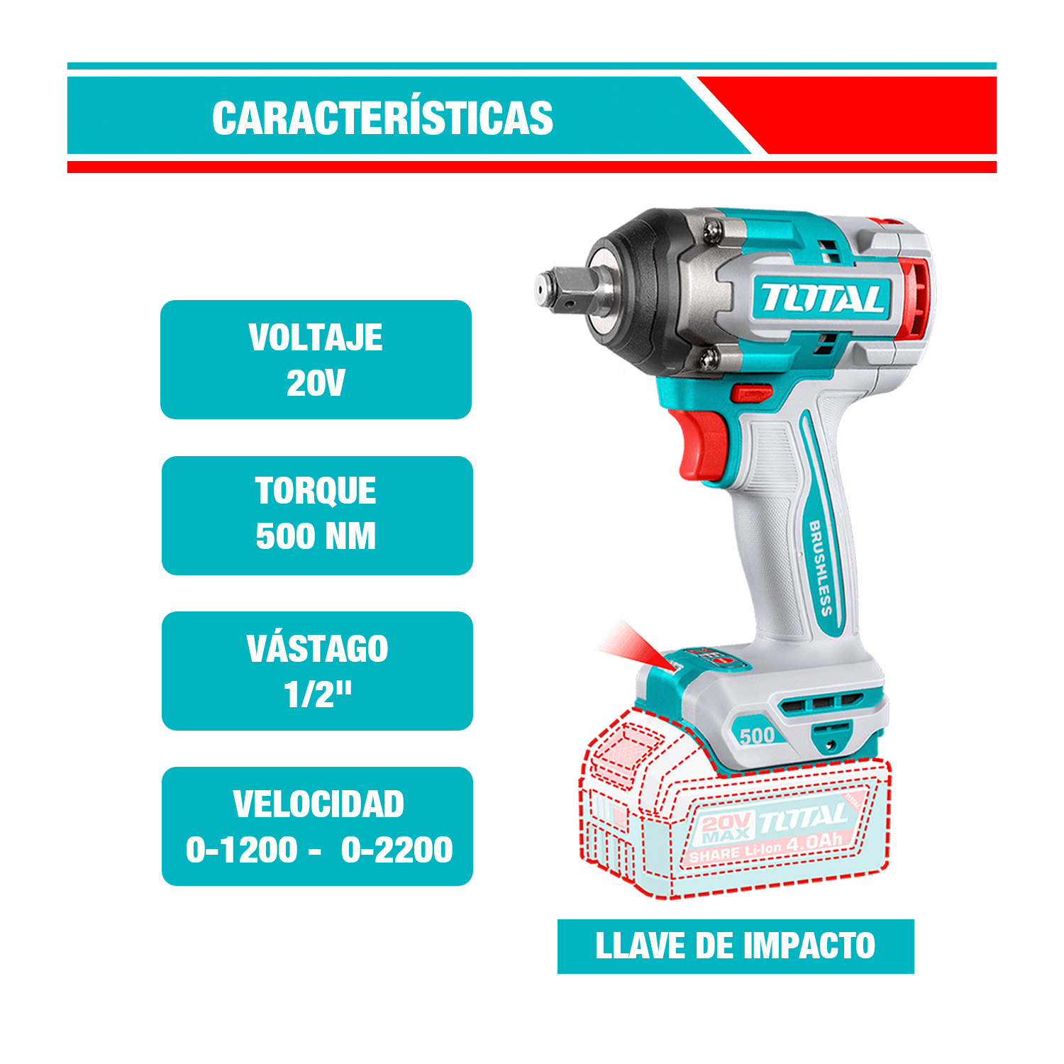 ESTE COMBO ENTERO INCLUYE: LLAVE DE IMPACTO INALÁMBRICA + RATCHET INALÁMBRICO + LÁMPARA DE TRABAJO + 2 BATERÍAS 4.0 AH 20V + 1 CARGADOR