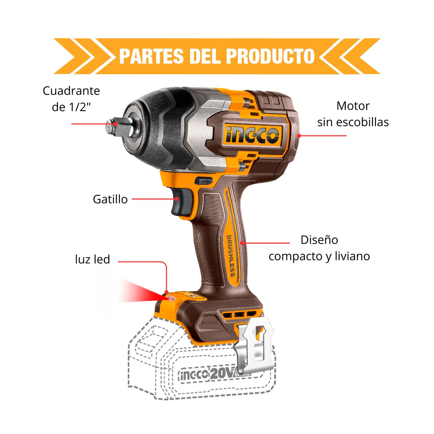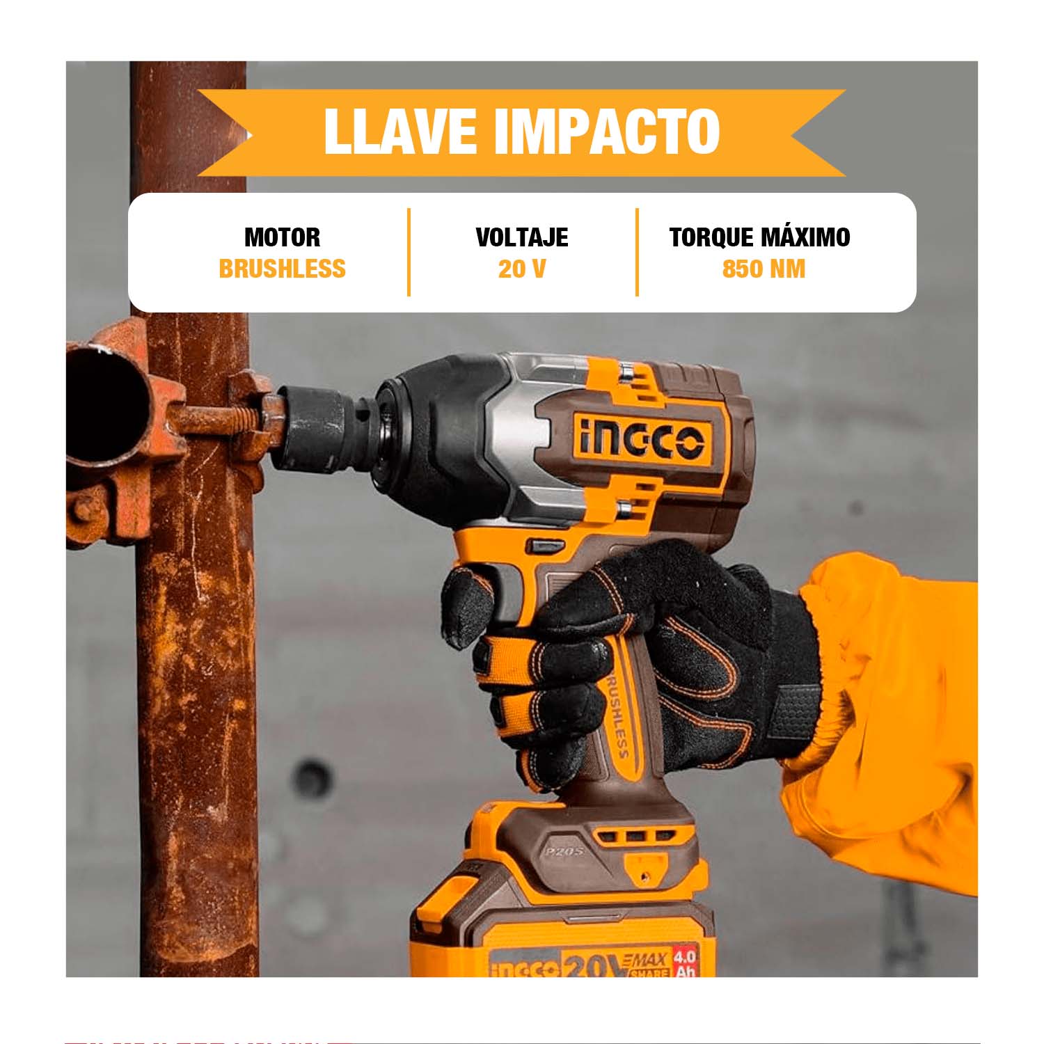 FICHA TÉCNICA: LLAVE DE IMPACTO 850NM + BAT 4AH Y CARGADOR INGCO