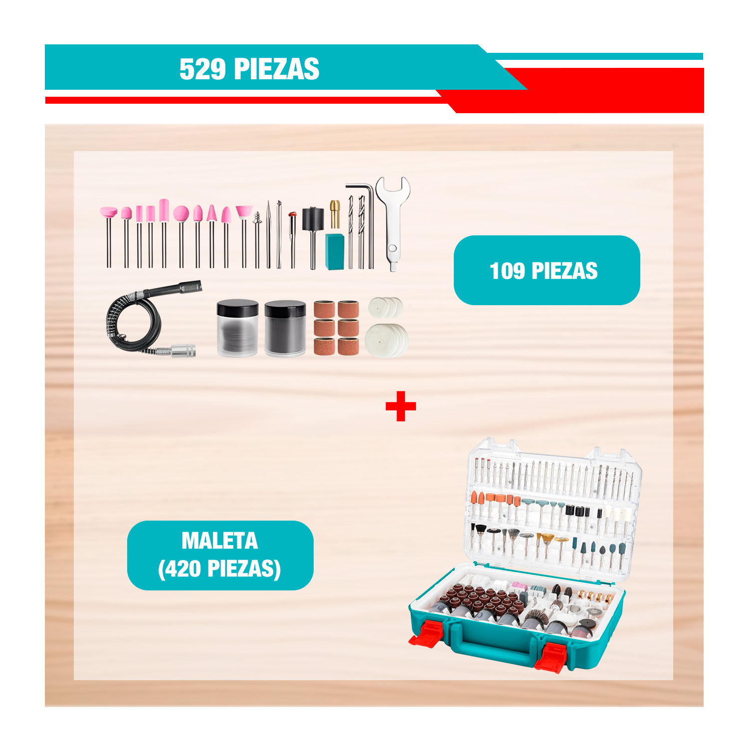 ESTE COMBO COMPLETO INCLUYE; 1 GRINDER; 529 ACCESORIOS PARA GRINDER; 1 EJE FLEXIBLE.