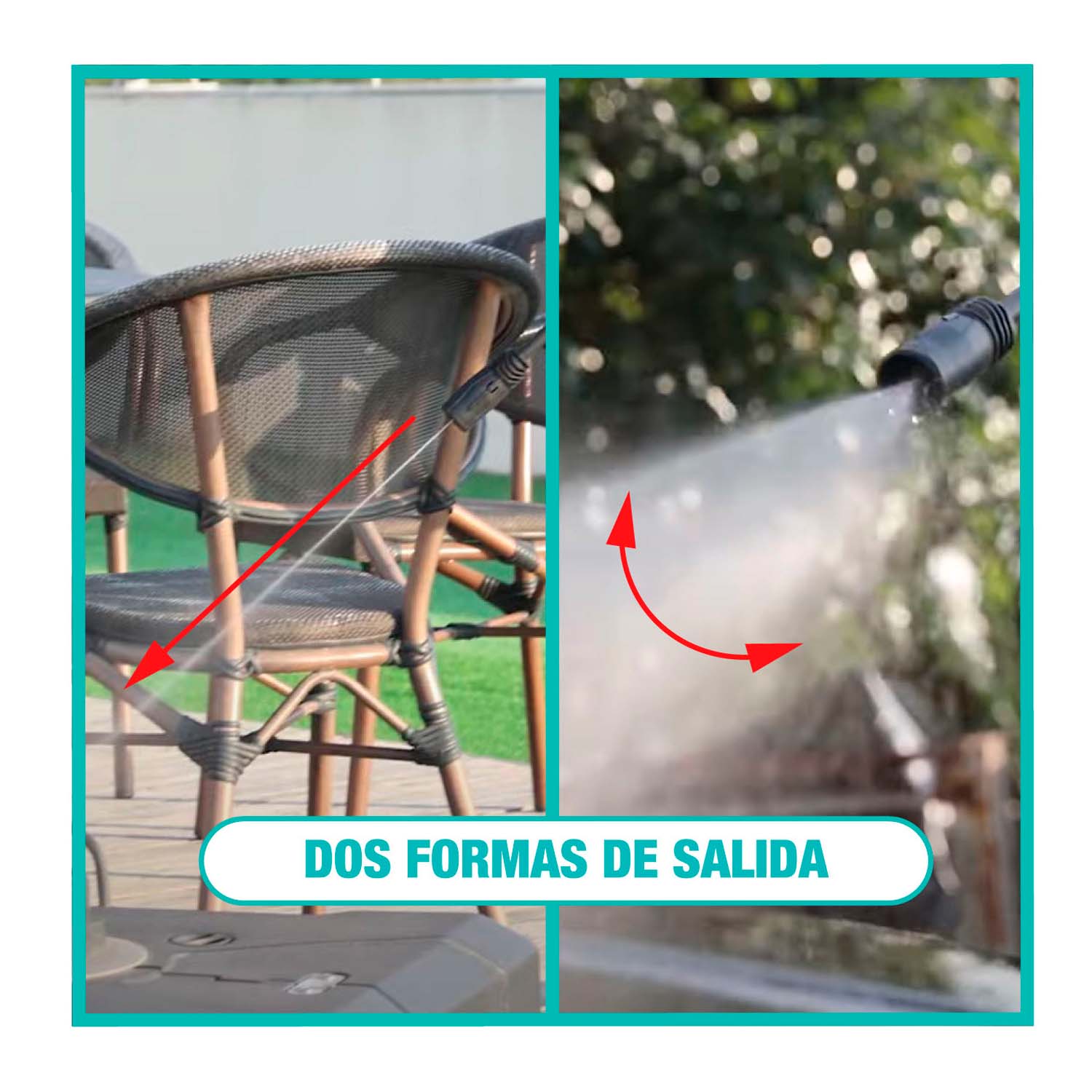 Cuenta con una pistola de rociado versátil que permite ajustar el patrón de salida del agua según la necesidad, ya sea para una limpieza más