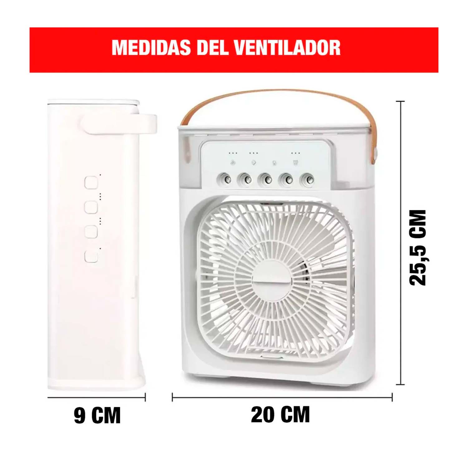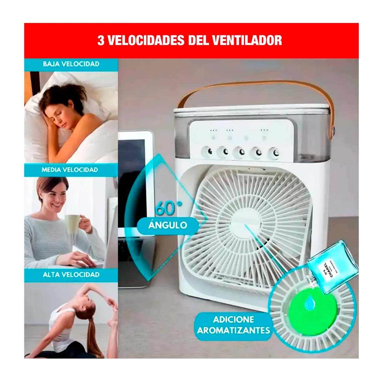 Disfruta del máximo confort en cualquier lugar con nuestro innovador enfriador de aire personal. Este dispositivo multifuncional no solo refresca el aire, sino que también lo humedece, creando el ambiente ideal para cualquier estación del año. Perfecto para tu escritorio, su diseño compacto y eficiente te permite llevarlo a donde quieras gracias a su práctica correa de transporte. Además, puedes personalizar tu experiencia con múltiples modos de velocidad y un temporizador ajustable, mientras que su espacio central te permite agregar aromatizantes para una atmósfera aún más agradable. La iluminación LED con siete colores diferentes añade un toque de relajación y estilo, haciendo de este enfriador el compañero ideal para cualquier espacio personal.