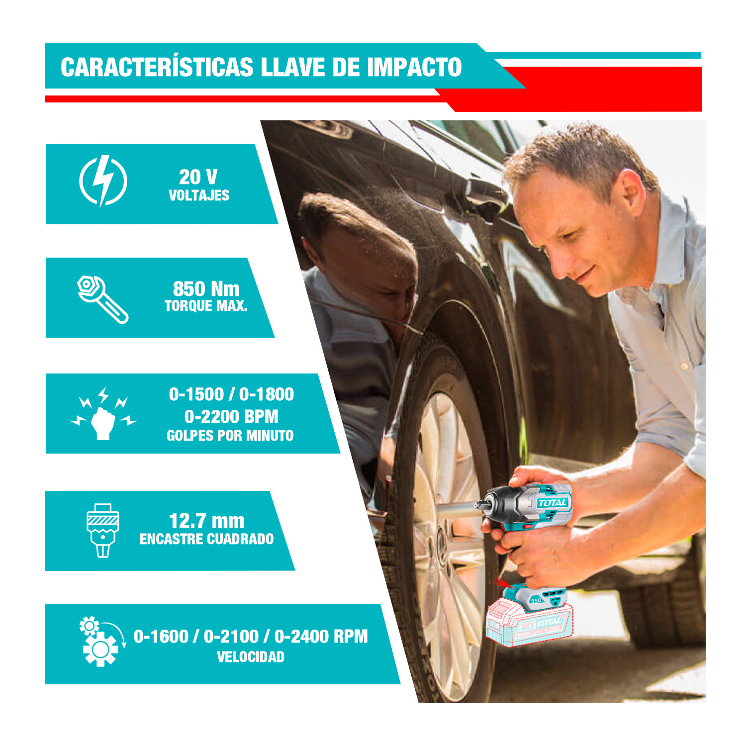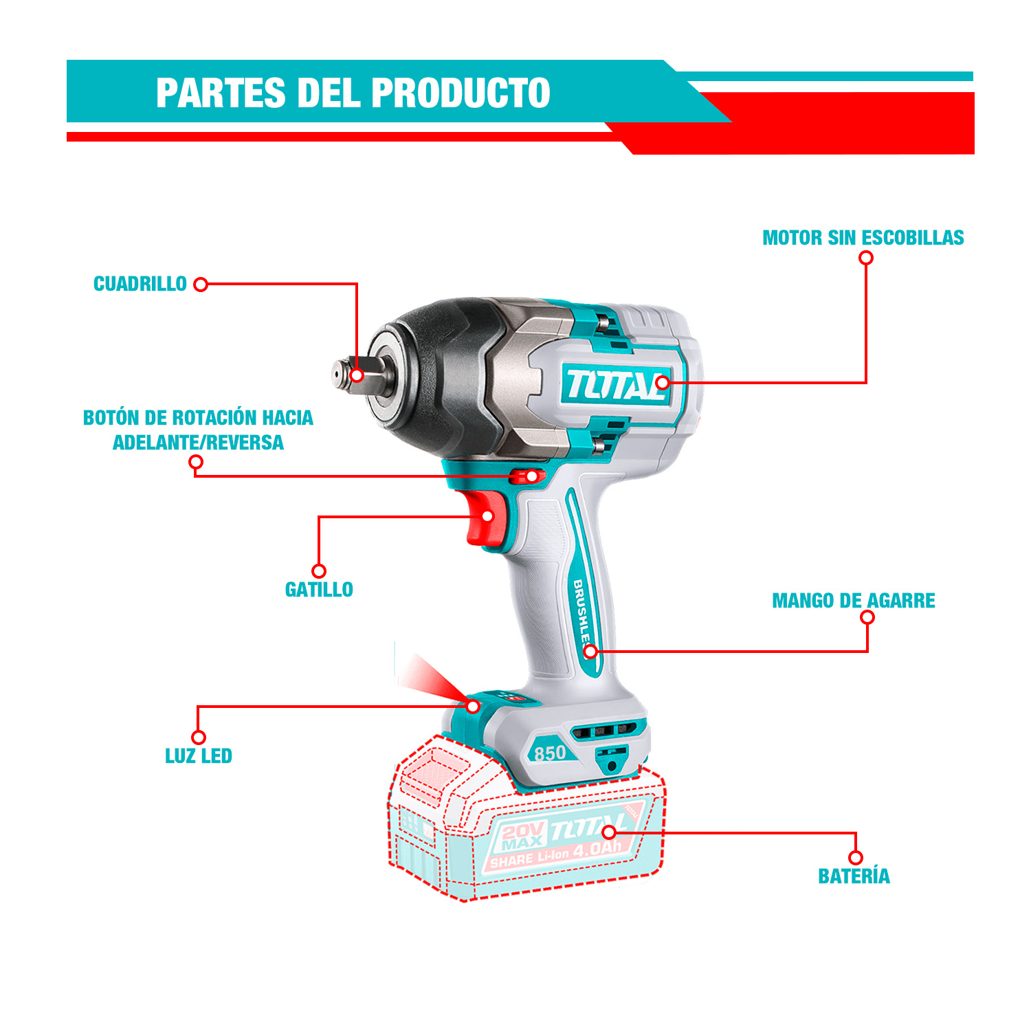 LLAVE DE IMPACTO 850NM BRUSHLESS TOTAL - TIWLI20851