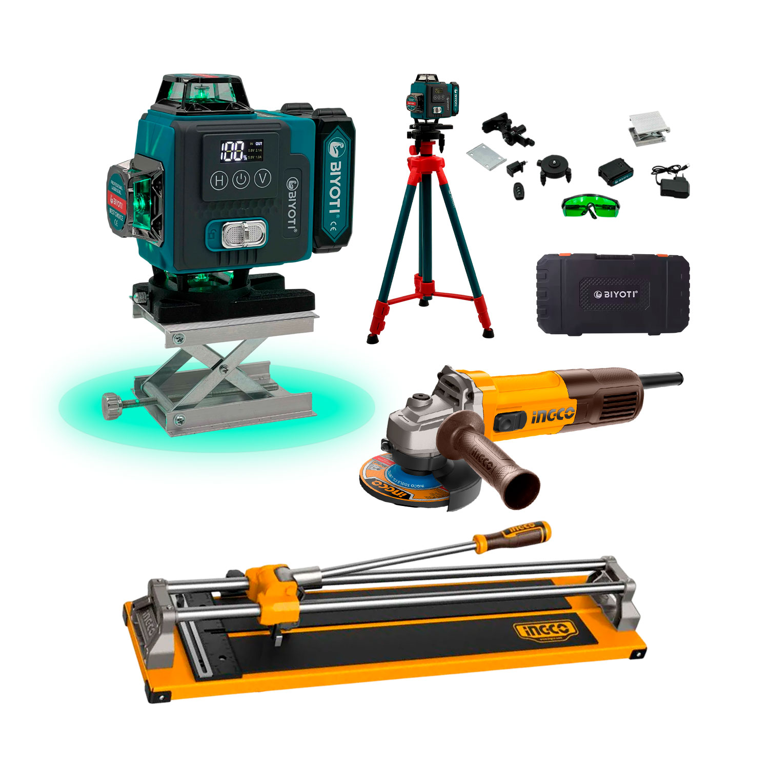Combo Nivel Láser 360° + Cortadora De Mayólica + Amoladora