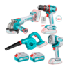 ESTE COMBO COMPLETO INCLUYE; AMOLADORA + TALADRO + SOPLADOR + LÁMPARA + 2 BAT 4.AH