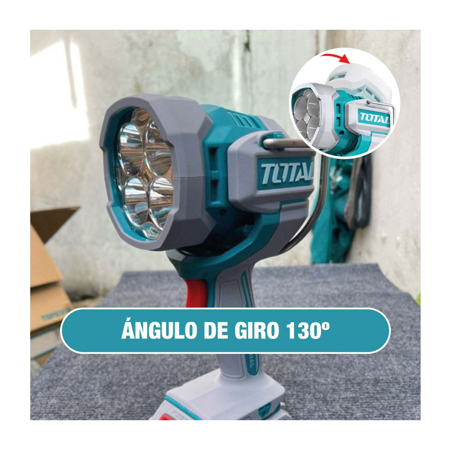El cabezal de la lámpara LED puede girar 130°