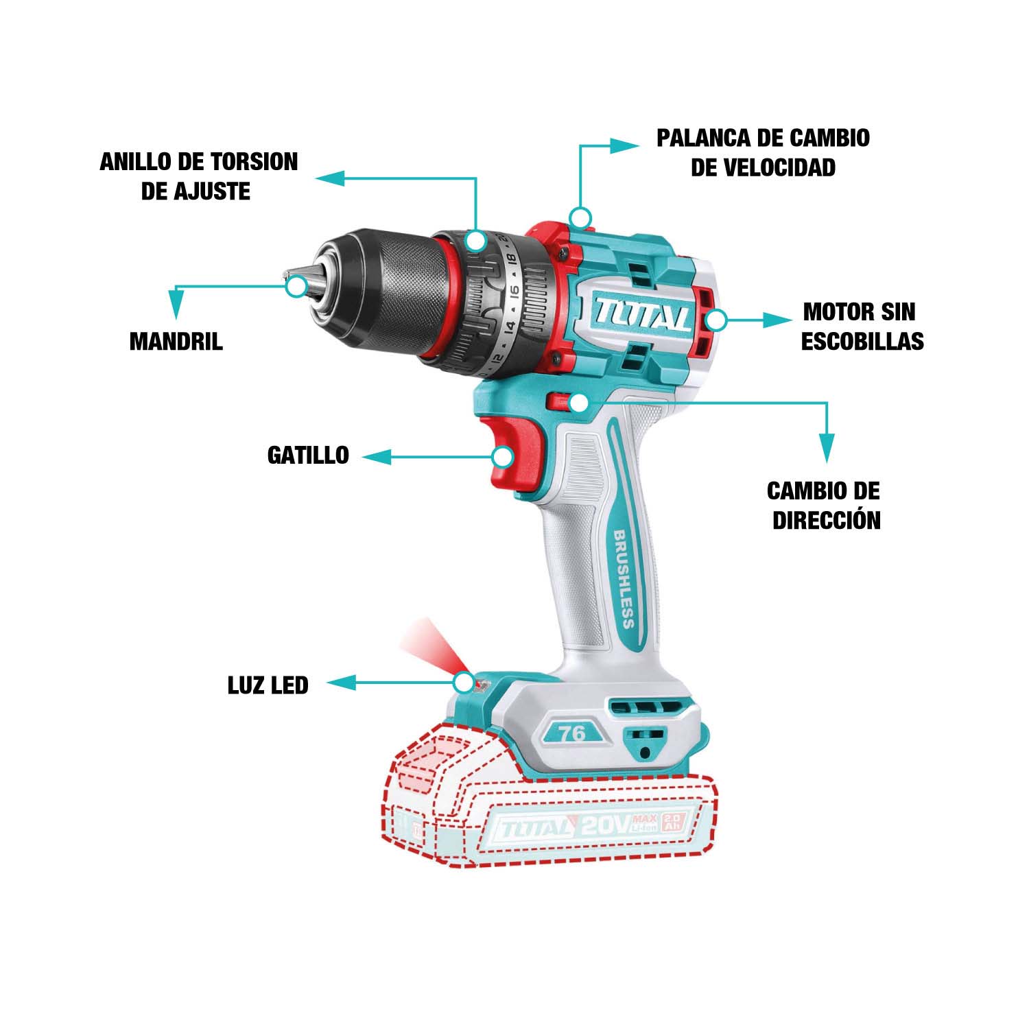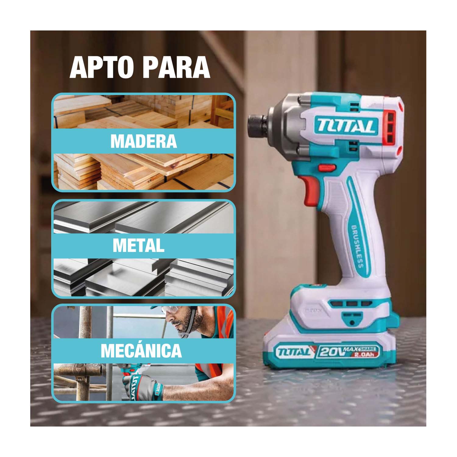 El producto TOSLI250182 es un combo de herramientas inalámbricas de la marca Total, diseñado para brindar versatilidad y potencia en diferentes tareas de construcción, montaje y