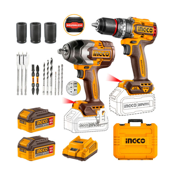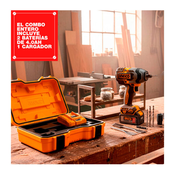 ESTE COMBO INCLUYE: 1 TALADRO ATORNILLADOR 96NM + 1 LLAVE DE IMPACTO 850NM + 2 BATERÍAS 4.0AH + 1 CARGADOR + ACCESORIOS