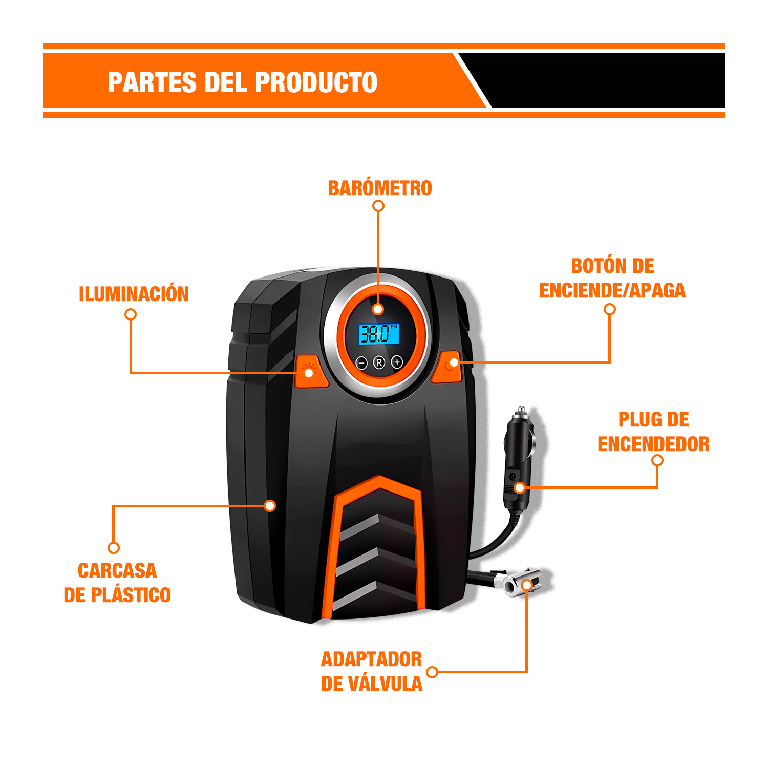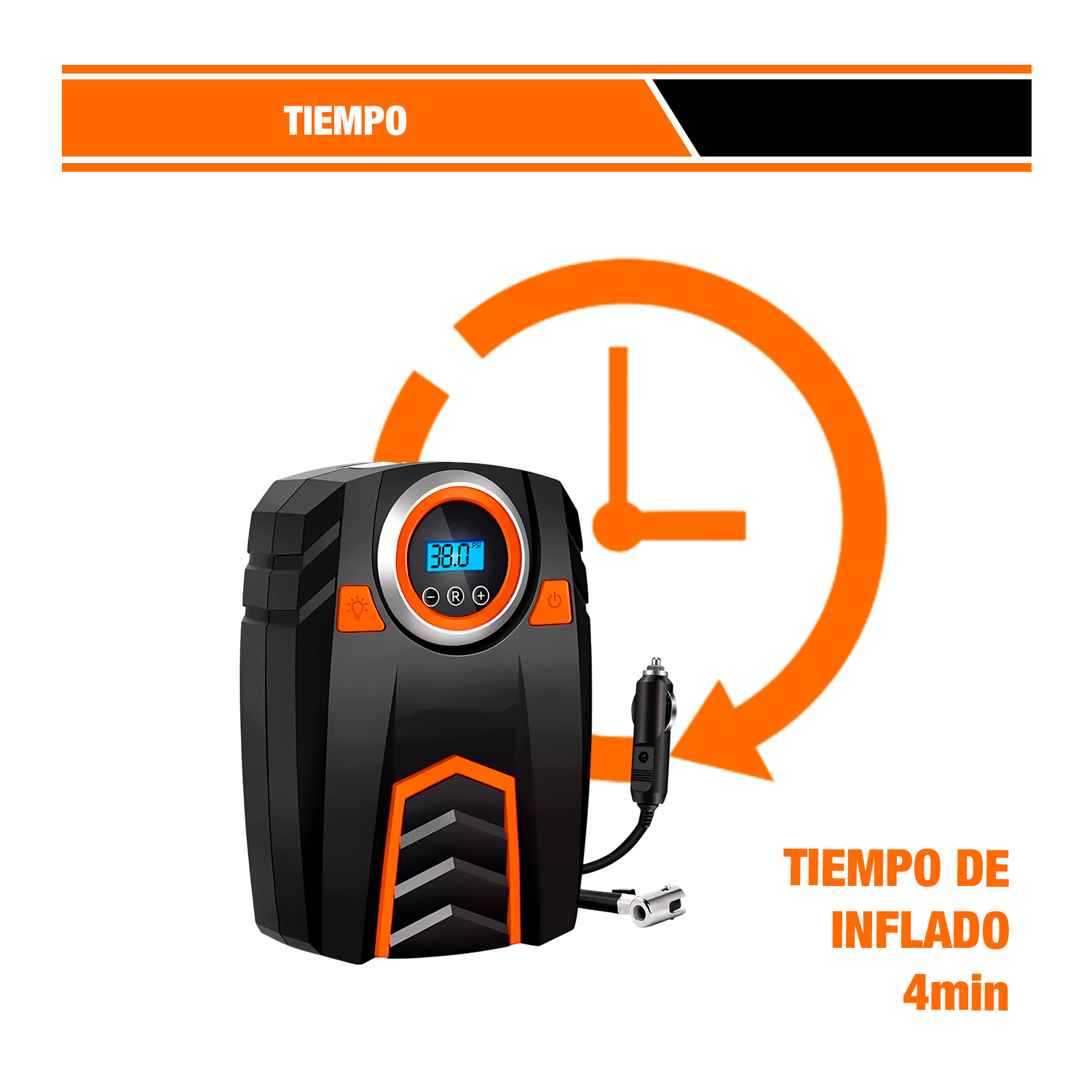 Disfruta de un inflado rápido, seguro y sin esfuerzo con este práctico compresor portátil. Su diseño compacto y su pantalla digital facilitan cada tarea, mientras que su poderosa presión garantiza resultados precisos en segundos. Ideal para autos, motos, bicicletas o accesorios, se convierte en el compañero perfecto para cualquier viaje o emergencia. Solo conéctalo, ajusta la presión y deja que haga el trabajo por ti. Confiable, moderno y listo para ayudarte cuando más lo necesitas.