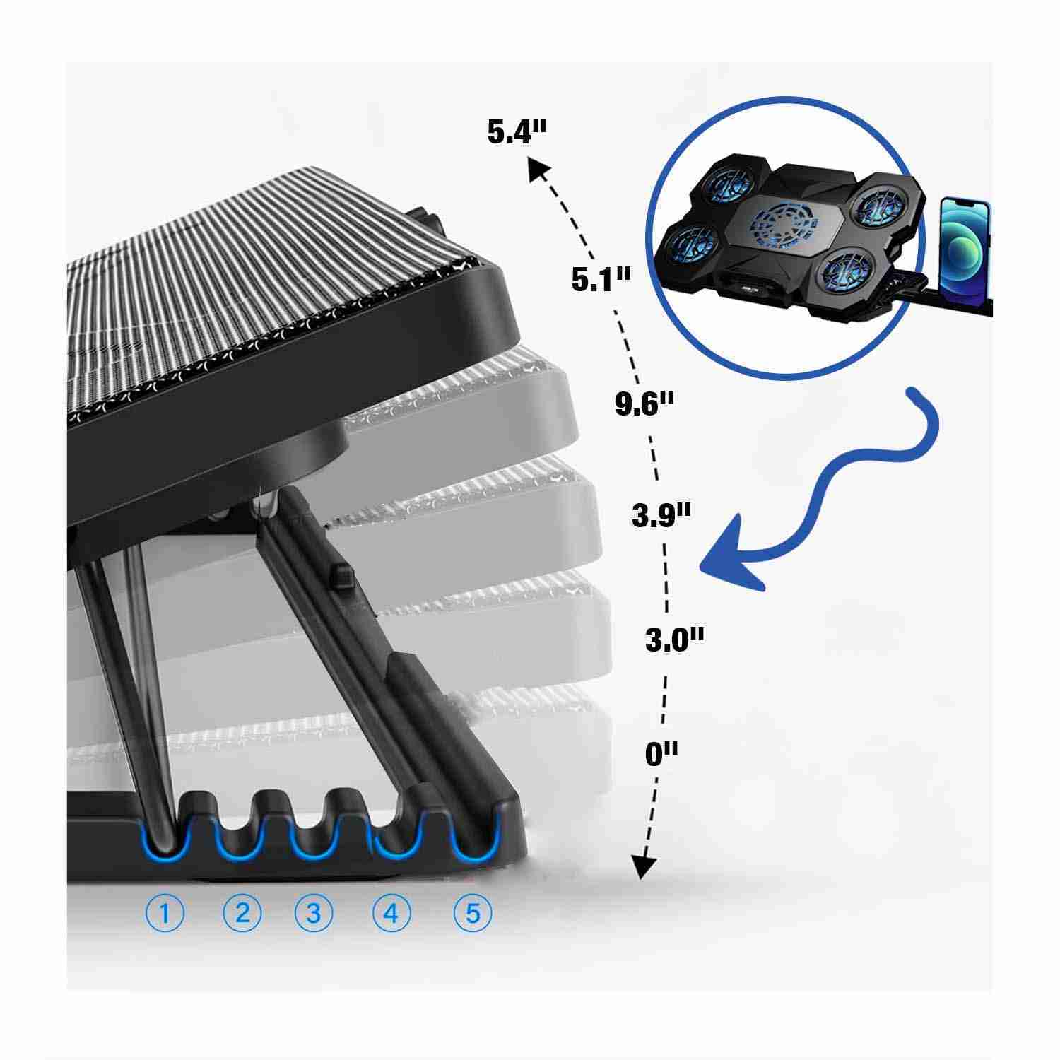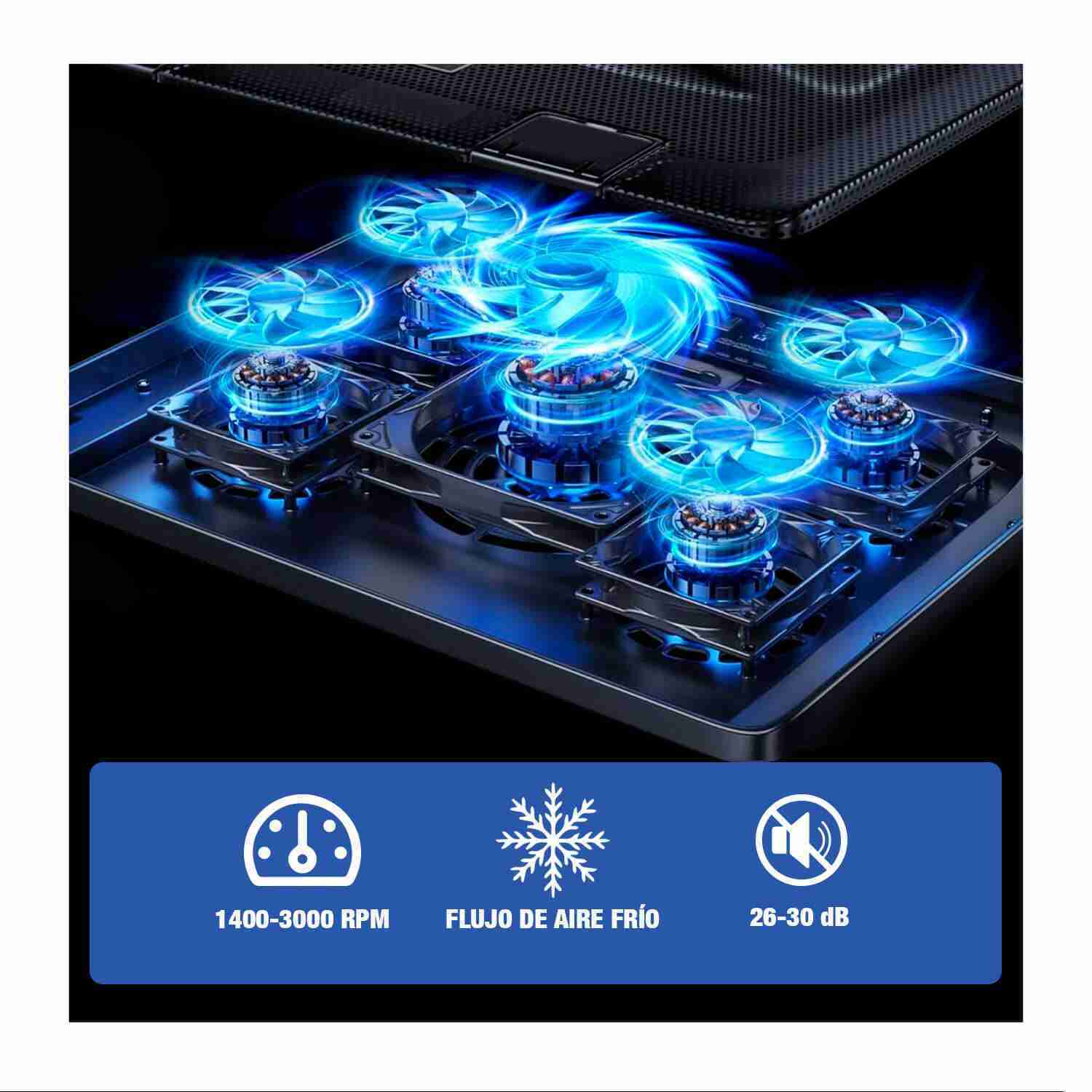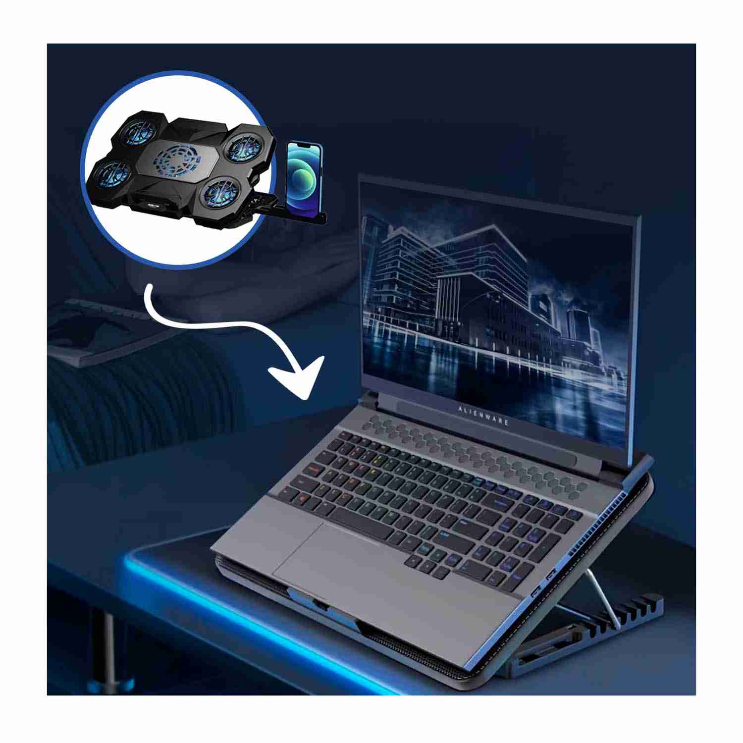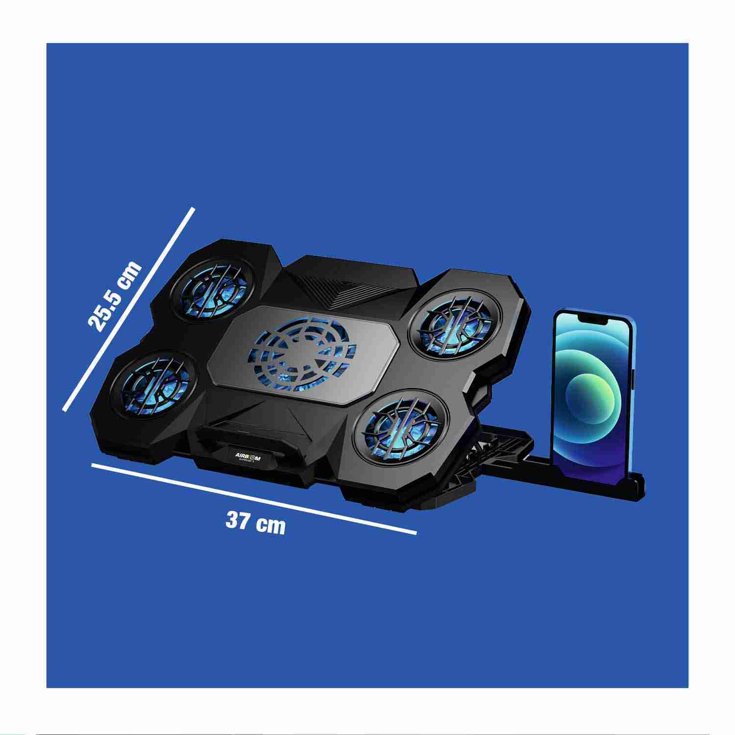 COOLER LAPTOP 5 VENTILADORES + SOPORTE PARA CELULAR LED AZUL