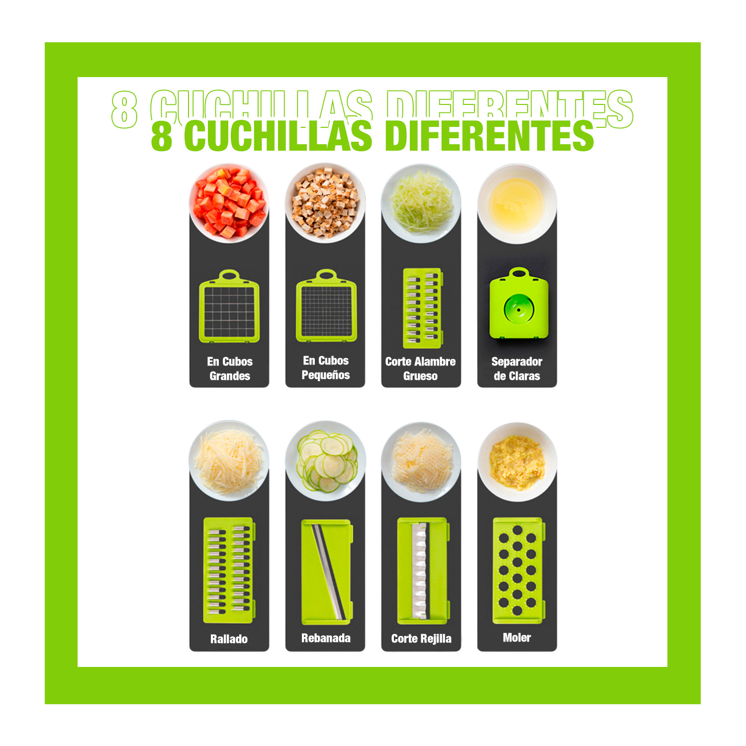 ESTE COMBO COMPLETO INCLUYE; 1PICADOR MULTIFUNCIONAL; 1 HERVIDOR DE HUEVOS.