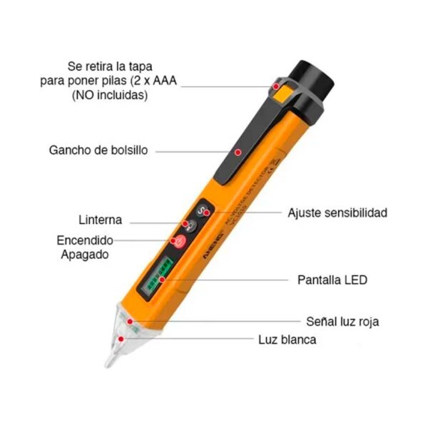 Sensibilidad NCV ajustable: Alto, Medio, Bajo