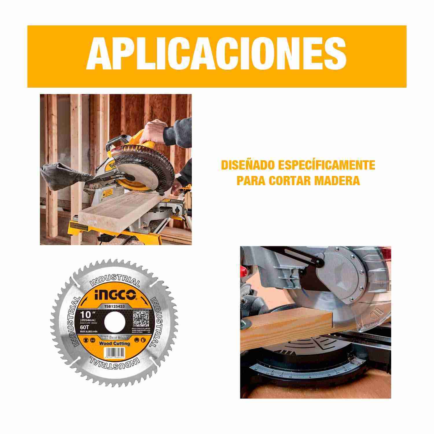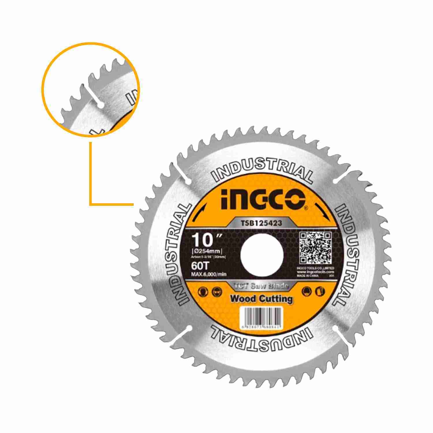 DISCO DE CORTE TCT 10» Y 60T PARA MADERA TSB125423 INGCO