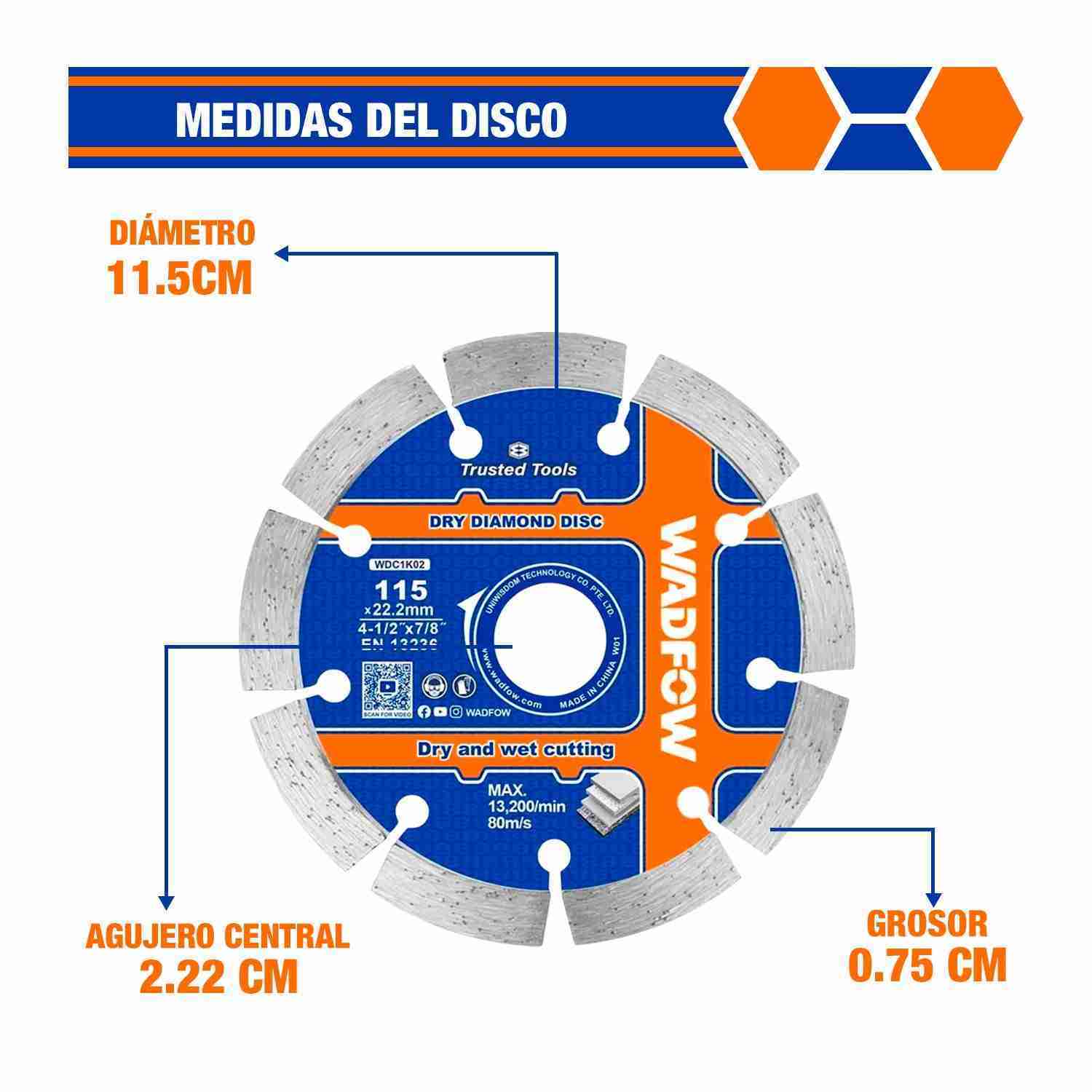 Disco Diamantado 4 1/2′ 115mm Corte Seco/húmedo WADFOW Wdc1k02