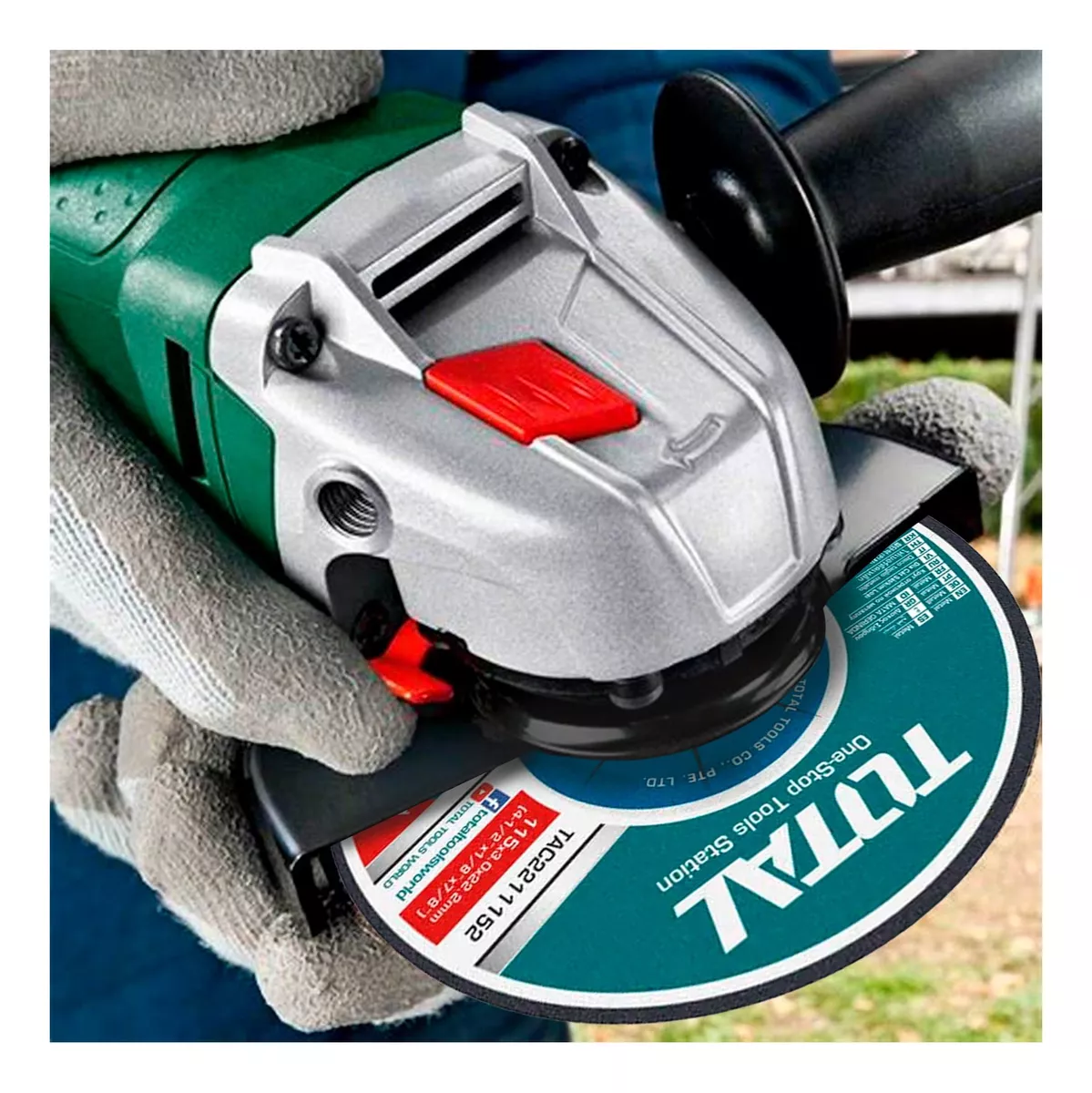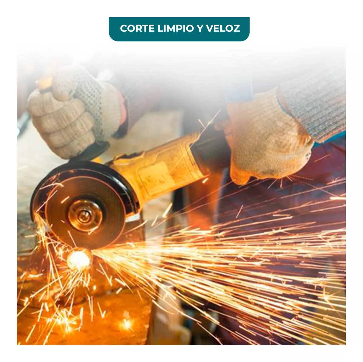Disco abrasivo para corte de metal. Para trabajar piezas de metal, piedra y acero inoxidable y más. Proporciona un corte limpio y veloz el cual reduce tiempo de trabajo. Posee capas de fibra de vidrio que aseguran confiabilidad, seguridad y larga vida útil.