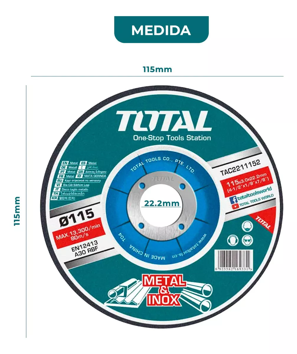 DISCO TOTAL CORTE METAL 4′ ½ AMOLADORA ESMERIL X30 UNIDADES