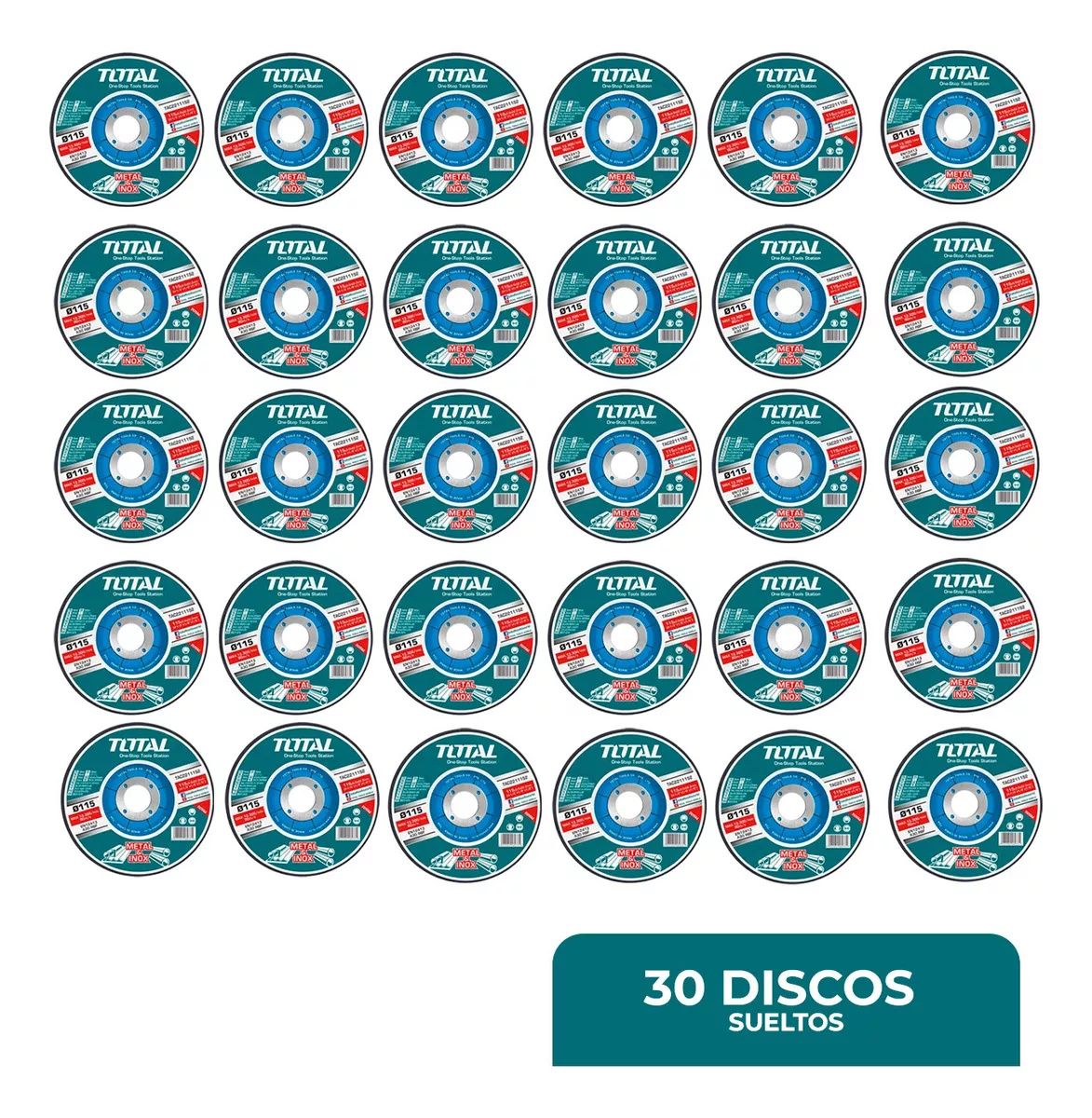 ESTE COMBO ENTERO INCLUYE 30 UNIDADES DE DISCOS TOTAL DE 4 1/2 CORTE METAL.