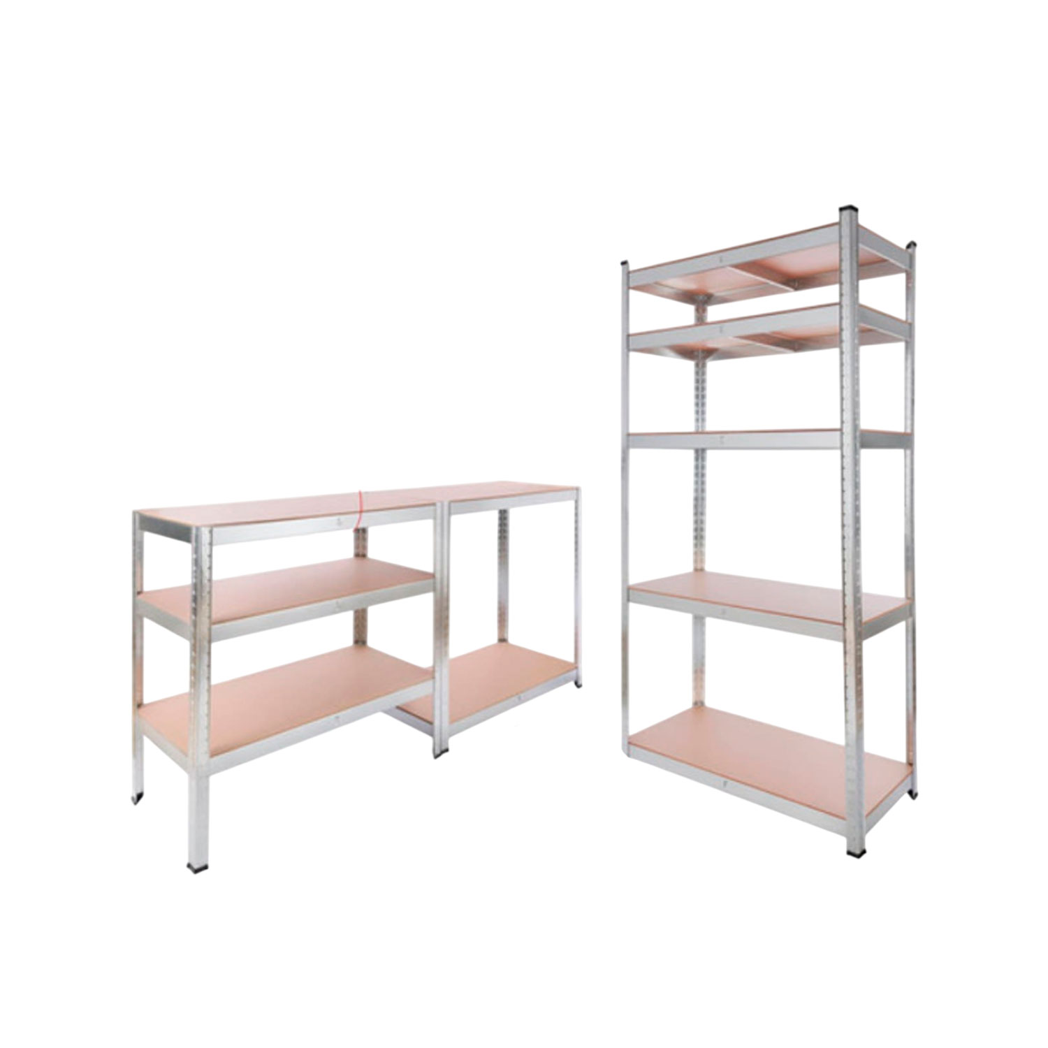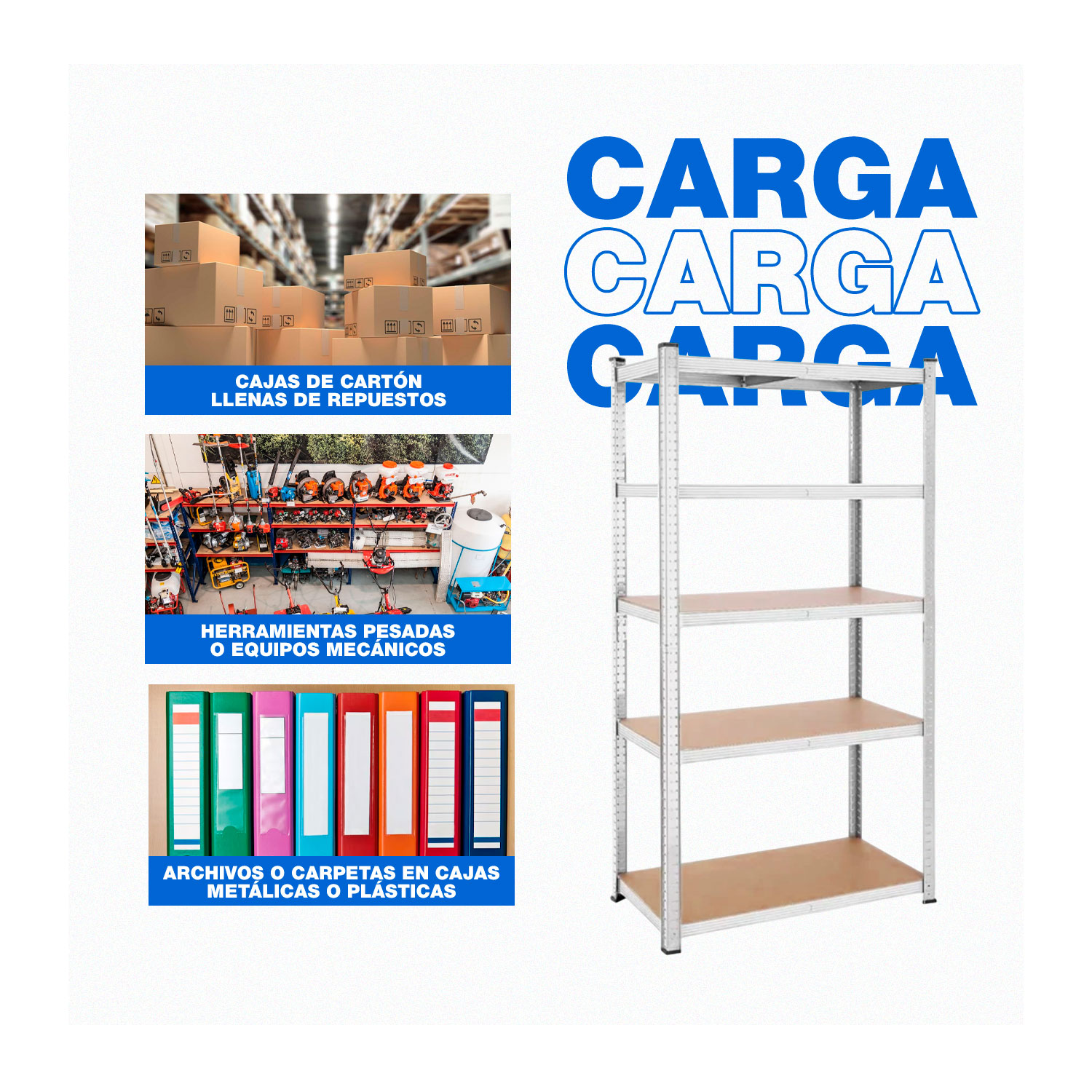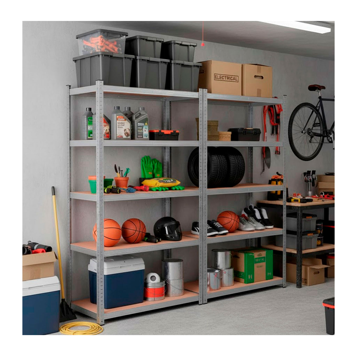 La estantería de 5 niveles WTS1A94 combina funcionalidad y robustez, con unas dimensiones de 900 mm de ancho, 400 mm de profundidad y 1 800 mm de altura, y es capaz de soportar hasta 175 kg en cada estante cuando la carga está distribuida de forma uniforme. Está construida con tableros de MDF de 4 mm de espesor y un marco de acero galvanizado de 0,60 mm, incluyendo soporte central en cada balda para mayor estabilidad. Su acabado galvanizado le aporta durabilidad y un aspecto limpio, haciéndola apta tanto para ambientes de taller, garaje u oficinas como para uso doméstico.