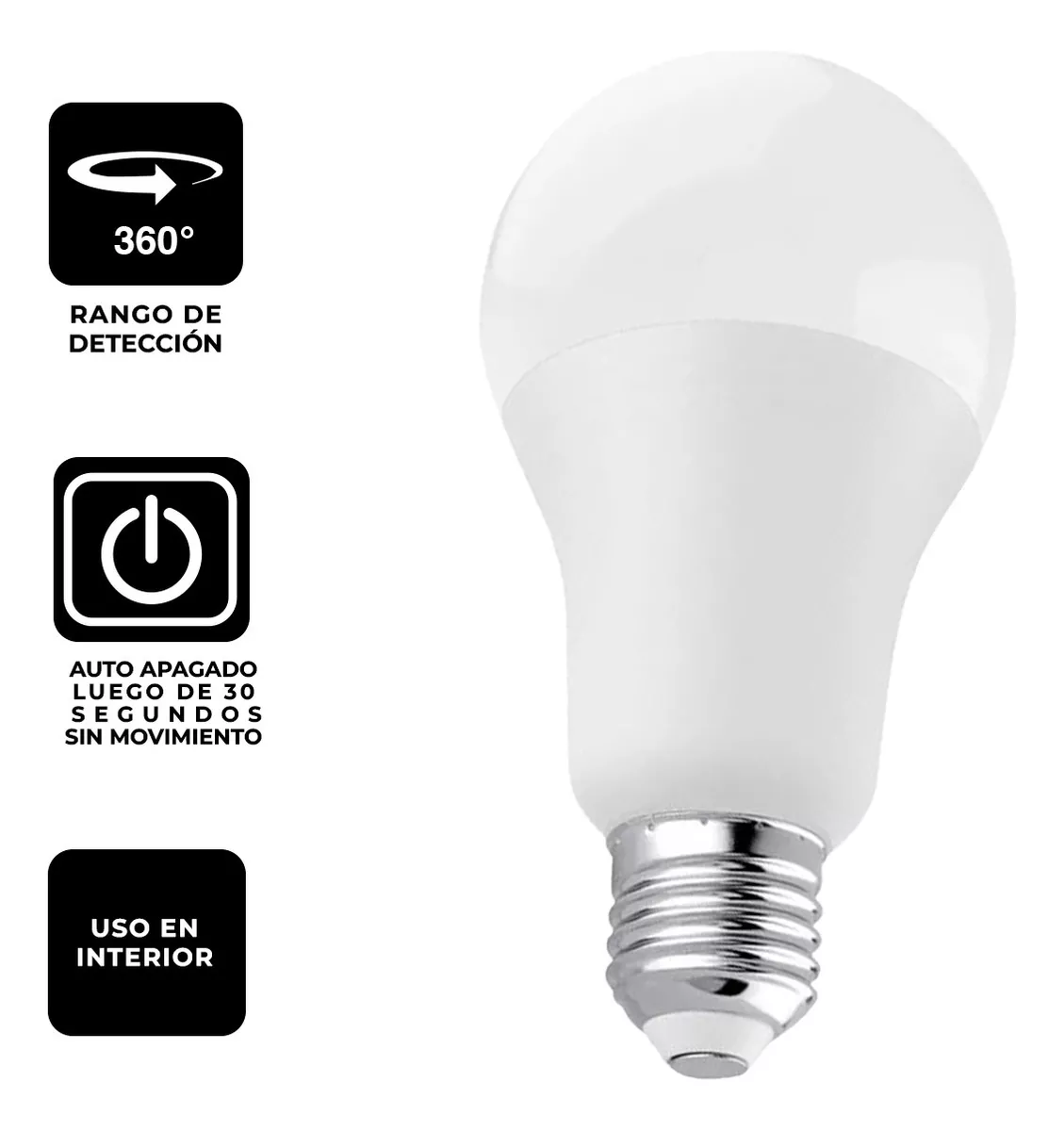 FOCO LED SENSOR MOVIMIENTO 9W LUZ BLANCA X2 UNIDADES