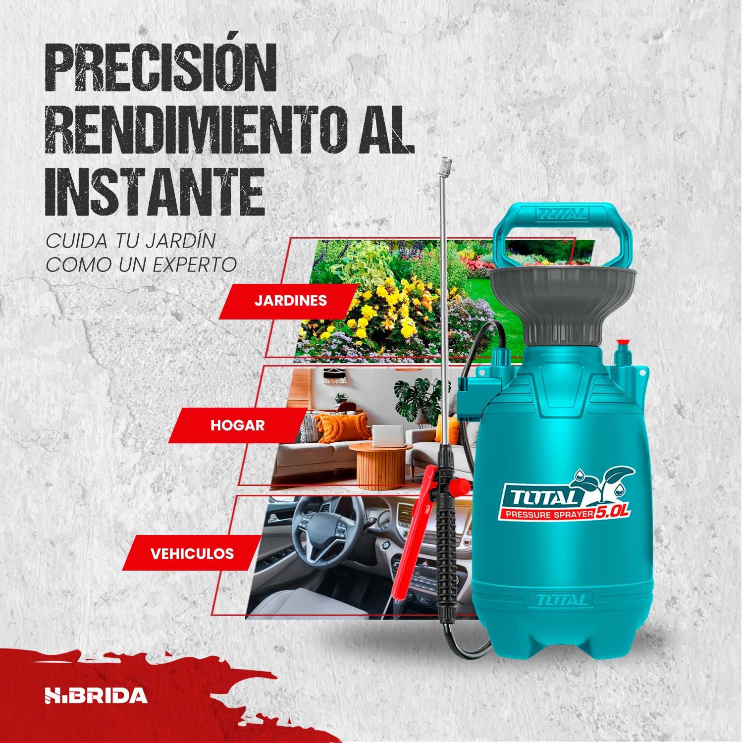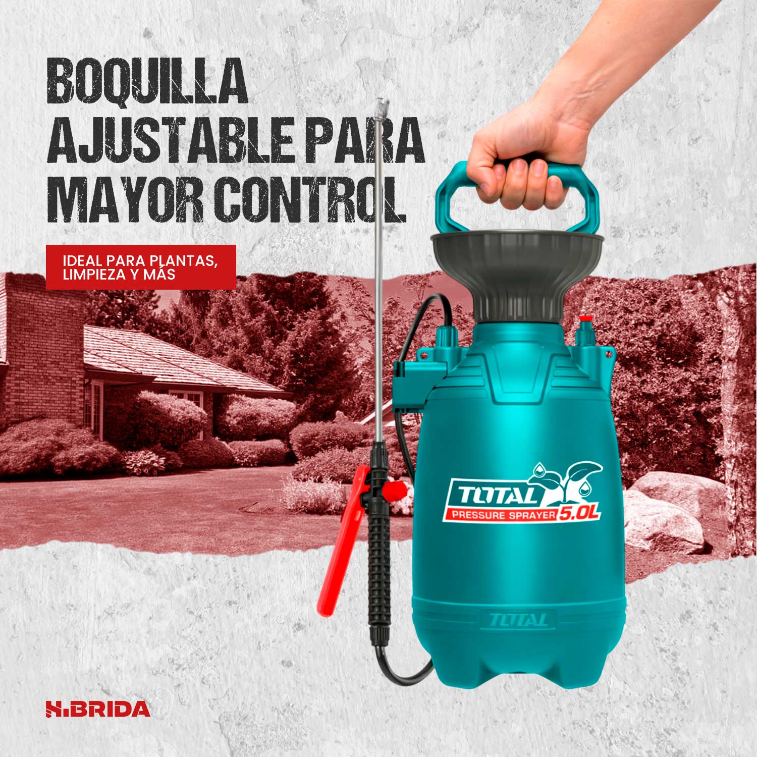 El fumigador a presión Total THSPP30502 es una herramienta robusta y eficiente de 5 litros diseñada para facilitar tareas de jardinería, agricultura y desinfección. Destaca por su construcción duradera con lanza de acero inoxidable y boquilla regulable, que permite alternar entre un rocío fino y un chorro directo, además de una válvula de seguridad que garantiza un manejo confiable bajo presión. Su diseño ergonómico incluye una manguera de 1.2 metros y una correa ajustable, convirtiéndolo en un equipo ligero y fácil de transportar para el cuidado preciso de tus plantas o la limpieza de espacios.