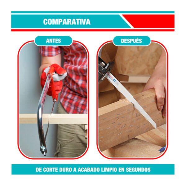 Potencia y precisión en cada corte. Con esta hoja de sierra recíproca podrás trabajar la madera de forma rápida y eficiente gracias a su diseño resistente de acero de alto carbono. Sus dientes afilados permiten cortes limpios y sin esfuerzo, incluso en piezas de mayor grosor. Ideal para carpintería, remodelaciones o proyectos de bricolaje, se adapta fácilmente a tu herramienta eléctrica para que nada te detenga. Su tamaño práctico y duradero la convierte en la aliada perfecta para lograr acabados profesionales con menos esfuerzo.