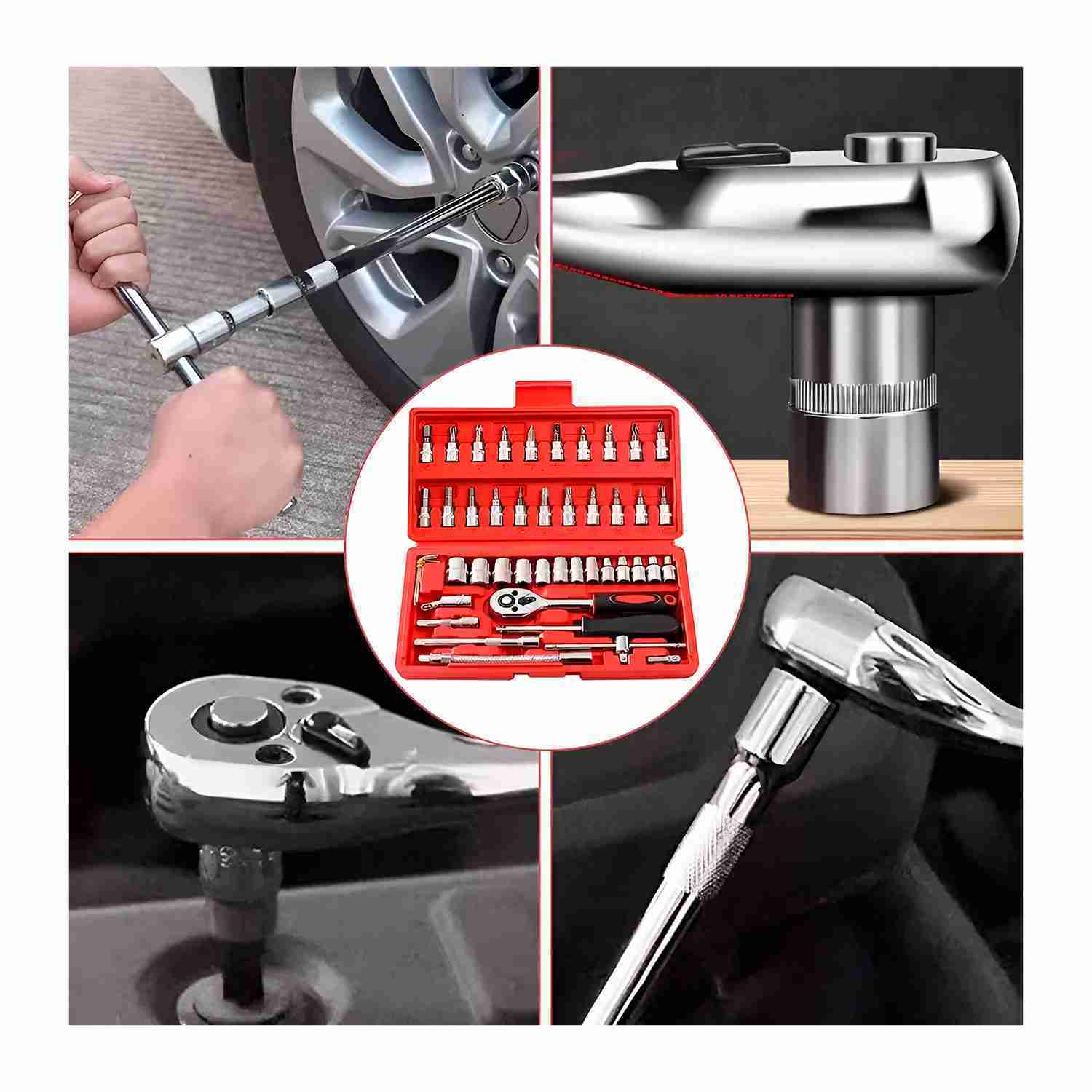 JUEGO DADOS CUBO PUNTAS 1/4 46 PIEZAS MULTIUSO ACERO MALETA - 46PCS