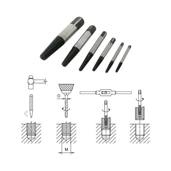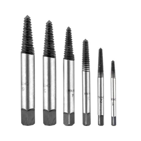 Juego de extractores de pernos de 6 piezas fabricados en acero al cromo.