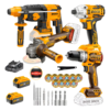 ESTE COMBO INCLUYE: 1 KIT INALAMBRICO (ROTOMARTILLO + LICUADORA PORTÁTIL + ATORNILLADOR DE IMPACTO + AMOLADORA ANGULAR + TALADRO ATORNILLADOR + DISCOS DE CORTE + ACCESORIOS