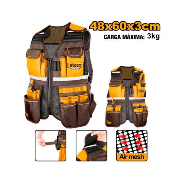 KIT4 CHALECO MOCHILA BOLSO CINTURÓN PORTA INGCO PORTA HERRAM