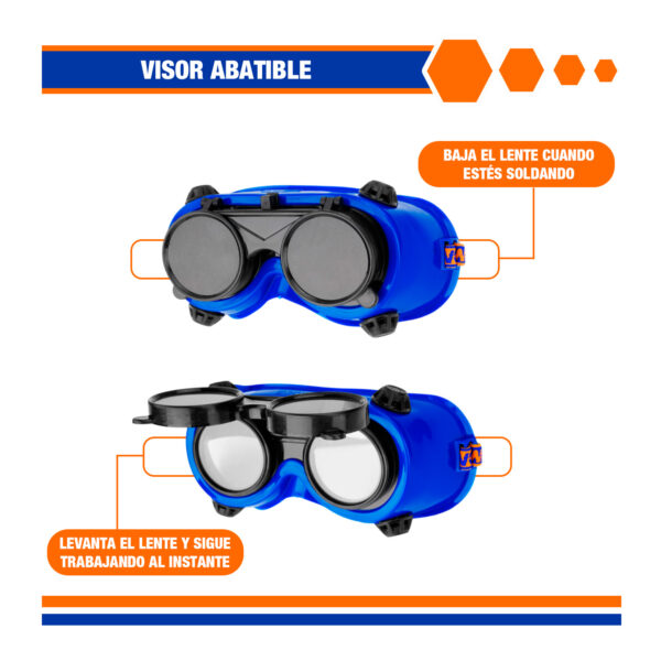 Protege tu vista en cada trabajo de soldadura con unas gafas diseñadas para brindarte seguridad y comodidad. Su diseño tipo flip-up te permite levantar el lente oscuro cuando no estás soldando, sin necesidad de quitártelas, mientras que la protección con sombra 11 bloquea eficazmente la intensidad de la luz del arco. Están fabricadas en un material flexible y ligero que se adapta al rostro, con sistema de ventilación para evitar el empañamiento. Además, cuentan con lentes claros internos y oscuros externos, ofreciendo la combinación perfecta entre visibilidad y protección.