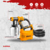 La INGCO SPG5008-2 es una pistola de pintar eléctrica de tecnología HVLP (Alto Volumen, Baja Presión) con una potencia de 550W, diseñada para ofrecer acabados uniformes y profesionales en proyectos domésticos, de carpintería y remodelación. Este equipo destaca por su versatilidad, ya que cuenta con una boquilla ajustable que permite tres patrones de rociado (horizontal, vertical y circular) y un tanque de aluminio de 800 ml que facilita la limpieza y resiste la corrosión. Gracias a su flujo máximo de 850 ml/min y su diseño ergonómico que incluye una correa para el hombro, permite cubrir grandes superficies de manera rápida y cómoda, siendo compatible con una amplia variedad de recubrimientos como esmaltes sintéticos y pinturas de látex.