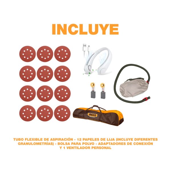 Lijadora De Pared Y Techo Telescópica 1050W Ingco + Ventilador