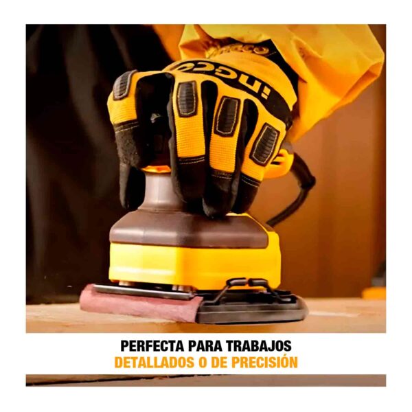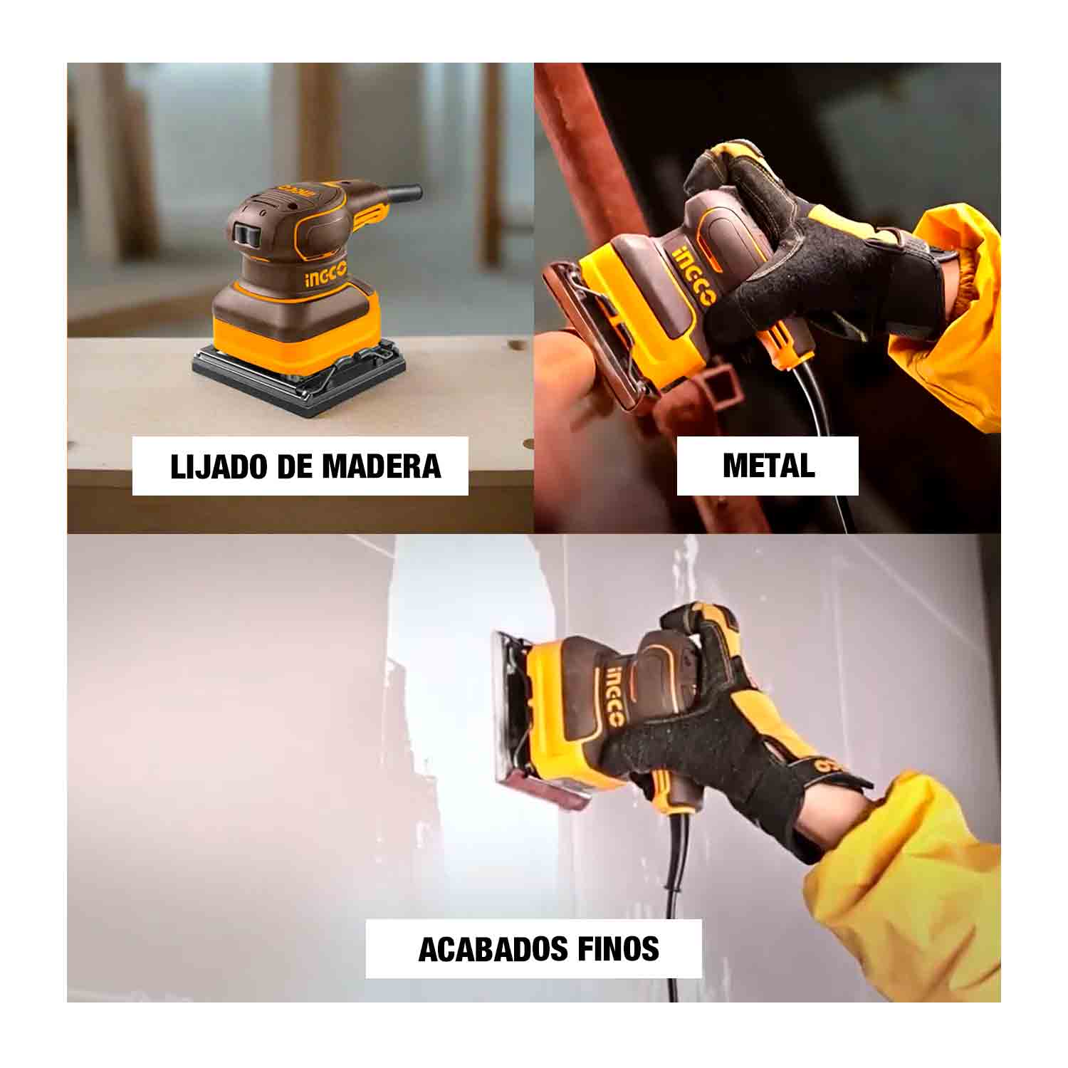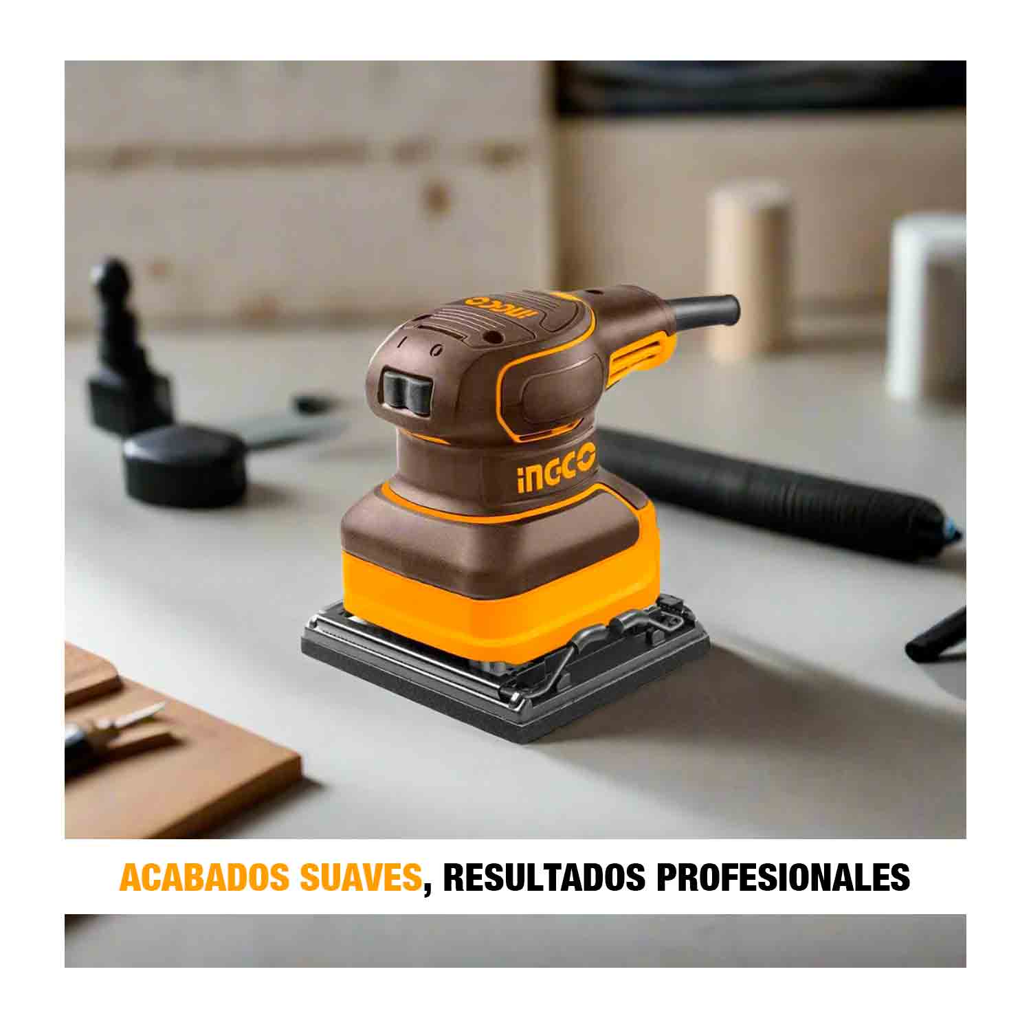 La Ingco PS2416 es una lijadora orbital de palma compacta y potente, equipada con un motor de 240W que alcanza hasta 14.000 oscilaciones por minuto, ideal para trabajos de carpintería, acabados en madera, plástico o superficies pintadas. Su base de 110 × 100 mm ofrece estabilidad y precisión, mientras que su diseño ergonómico permite un manejo cómodo y seguro. Incluye un set de lijas y escobillas de repuesto, lo que garantiza mayor durabilidad y rendimiento. Ligera y práctica, es una herramienta versátil para uso doméstico o profesional en talleres.
