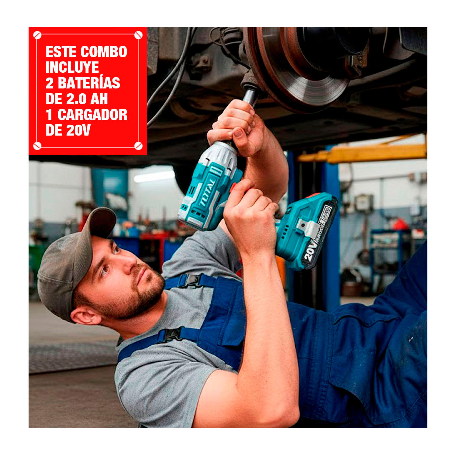 ESTE COMBO INCLUYE: 1 LLAVE DE IMPACTO + 1 ADAPTADOR PARA ATORNILLAR + 3 DADOS + 2 BATERÍAS DE 2.0AH + 1 CARGADOR + BOLSA DE TRASPORTE + VENTILADOR POTÁTIL