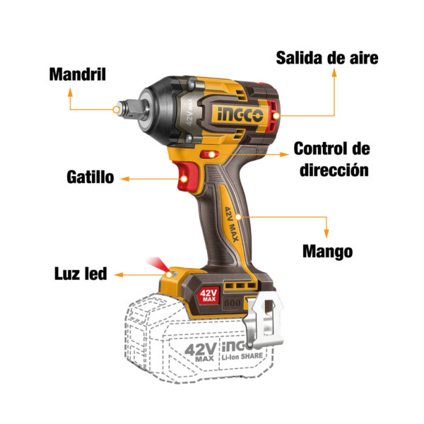 LLAVE DE IMPACTO INALAMBRICA 42V BRUSHLESS +ACCS INGCO CIWLI42602