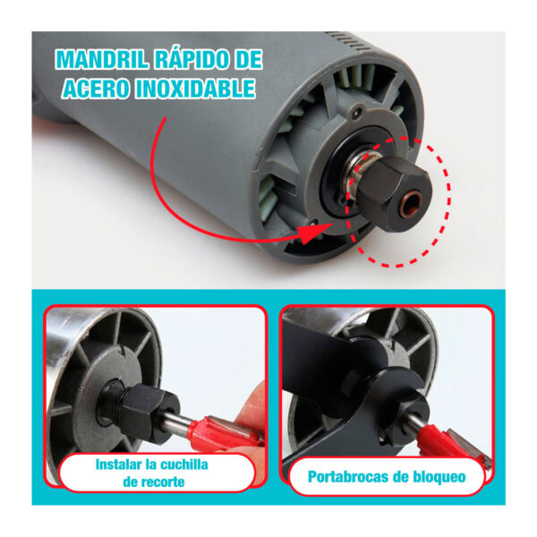 ESTE COMBO INCLUYE: 1 MINI FRESADORA + SET DE 6 FRESAS + ACCESORIOS