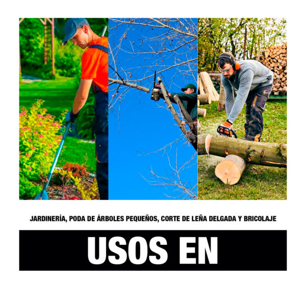 La Mini Motosierra Inalámbrica 21V es ligera, potente y práctica, ideal para poda de árboles, jardinería y cortes de madera ligera. Con espada de 6” (15 cm), motor de 550W y 2 baterías recargables de litio, ofrece autonomía y eficiencia en cada uso. Su diseño portátil con mango ergonómico y protector de cadena brinda comodidad y seguridad, mientras que su maletín con accesorios incluidos la hace perfecta para trabajos en casa o exteriores.