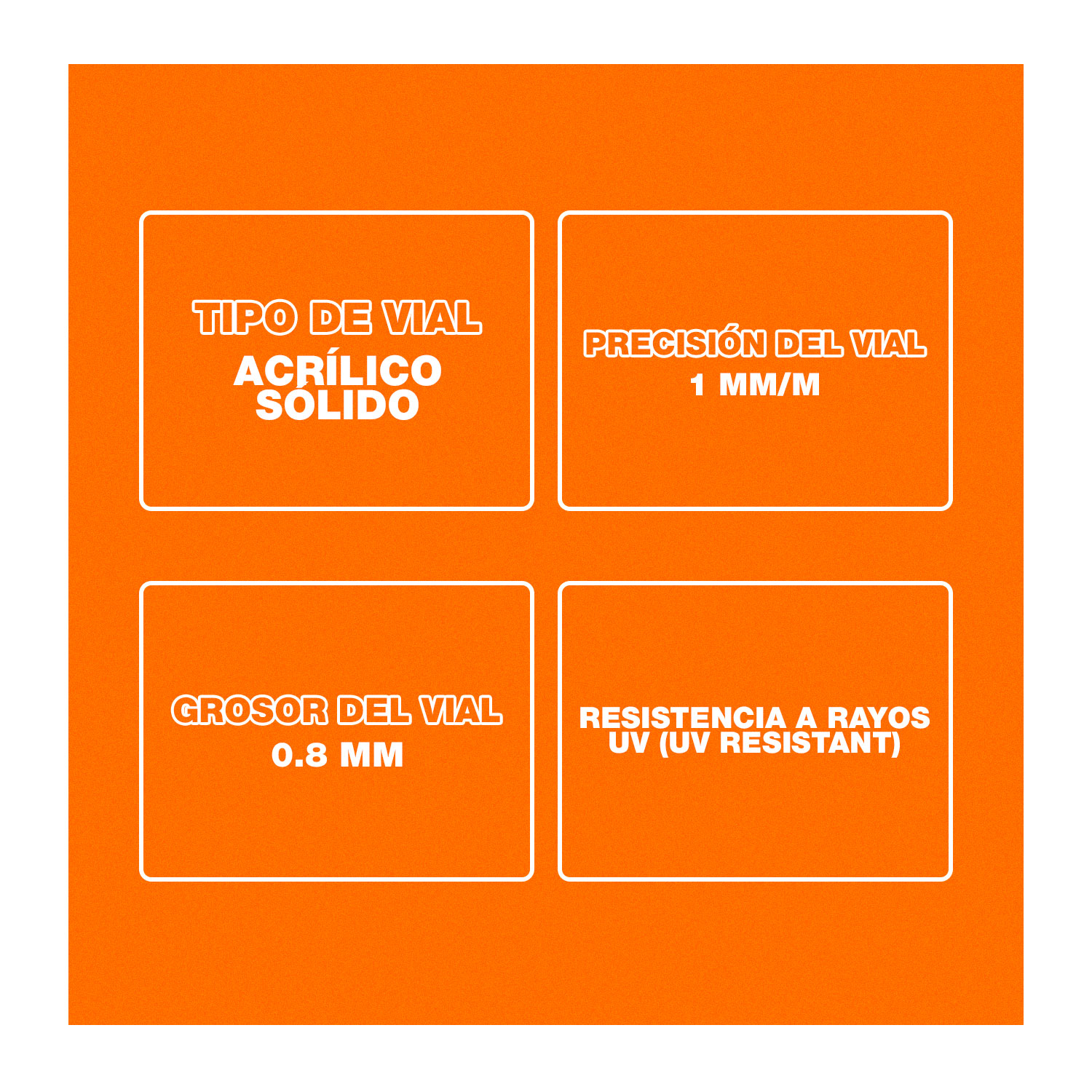 - Tipo de Vial: Acrílico sólido tipo (resistente a impactos)