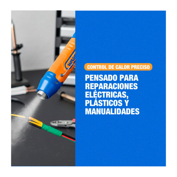 La Pistola de Calor Wadfow WHG2501 de 350W es una herramienta compacta y versátil, ideal para manualidades, reparaciones electrónicas, modelismo y trabajos con tubos termorretráctiles. Con un diseño ligero y ergonómico, ofrece un flujo de aire constante y temperatura de hasta 200 °C, permitiendo un uso seguro y preciso. Incluye 2 boquillas metálicas y un set de tubos termorretráctiles que amplían sus aplicaciones, convirtiéndola en una opción práctica tanto para el hogar como para proyectos profesionales.