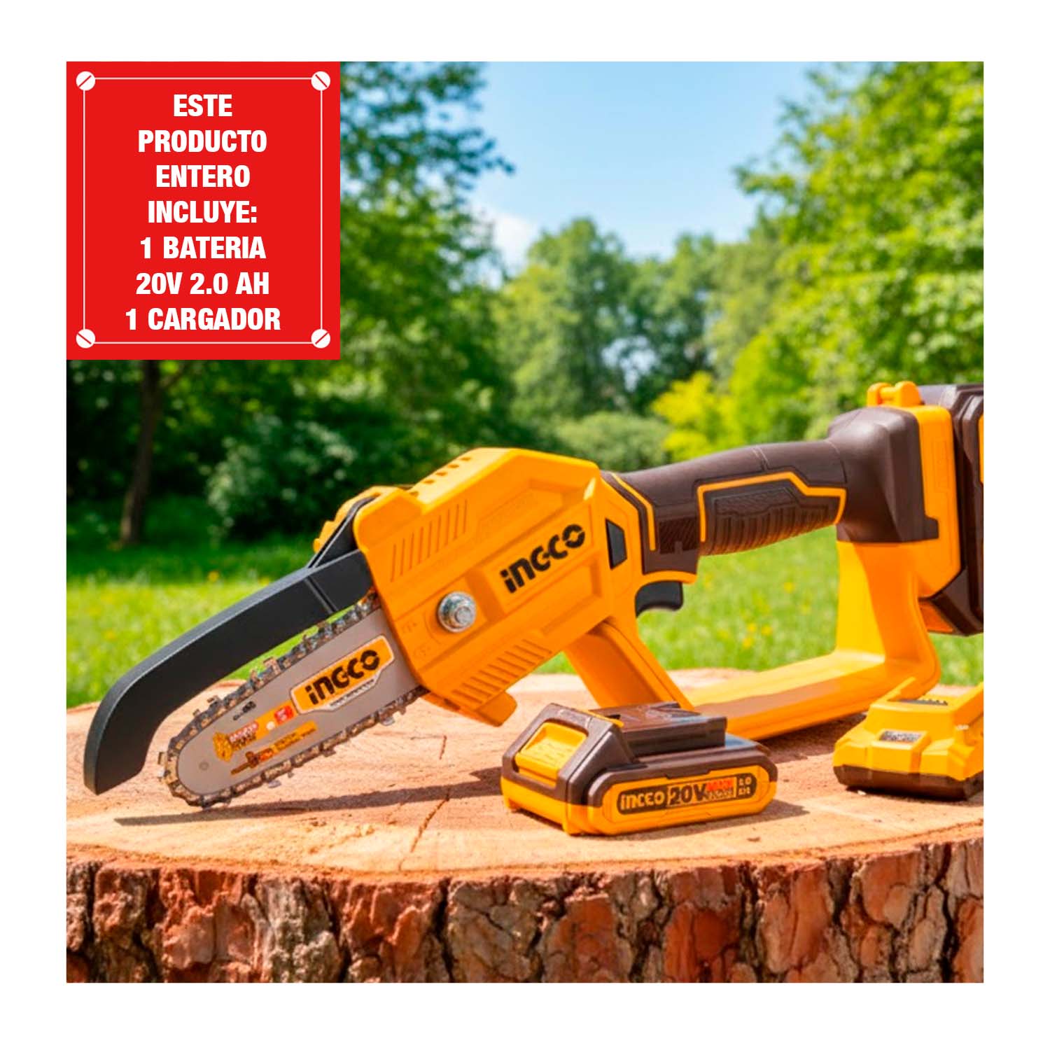 Este producto incluye motosierra inalámbrica, 1 batería de 2Ah 20V y 1 cargador, ofreciendo una solución completa para empezar a trabajar de inmediato. Al ser inalámbrica, brinda mayor libertad de movimiento y elimina la necesidad de cables, permitiendo trabajar en cualquier lugar con total comodidad.